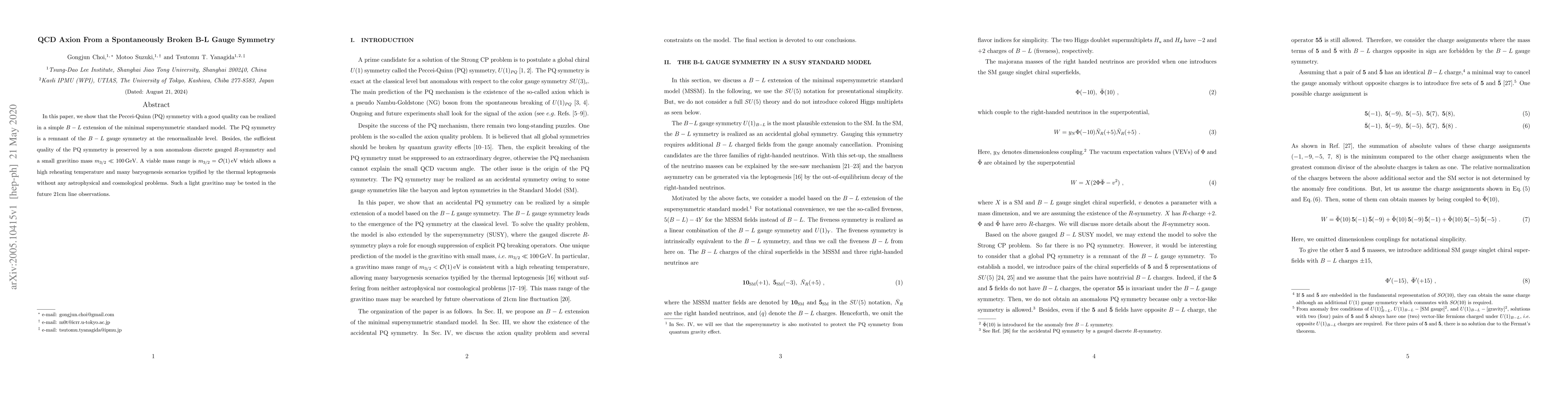 This paper proposes a realization of Peccei-Quinn symmetry in a $B-L$ extended supersymmetric standard model, with a good quality preserved by $R$-symmetry and a light gravitino. A viable mass range of $mathcal{O}(1)$eV for gravitino enables high reheating temperature and various baryogenesis scenarios, potentially testable in future 21cm line observations.