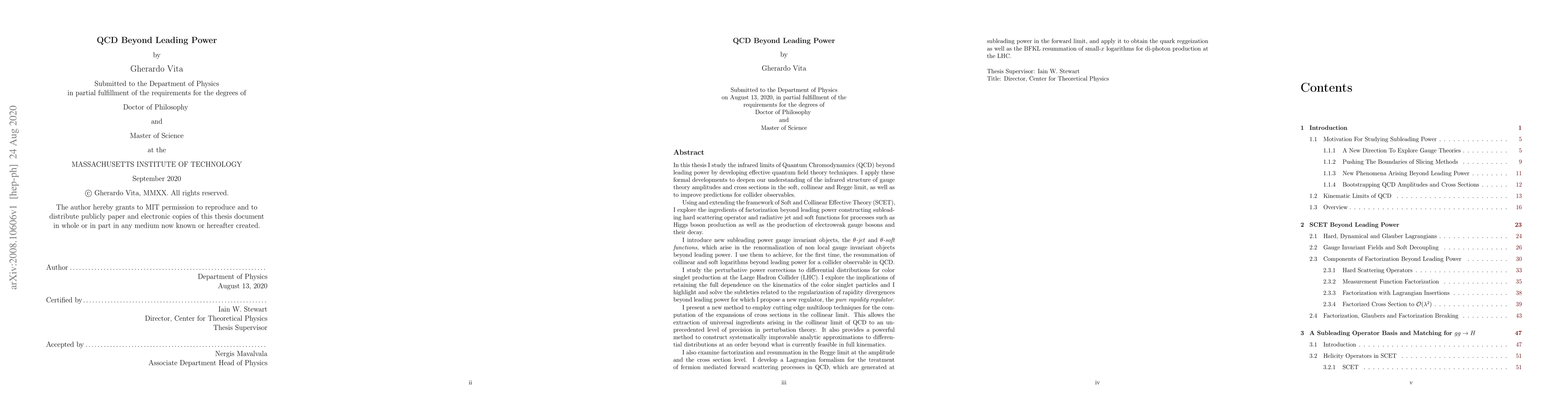 This research develops effective quantum field theory techniques to explore QCD beyond leading power, utilizing Soft and Collinear Effective Theory (SCET) to construct subleading hard scattering operators and radiative functions. It introduces new subleading power gauge invariant objects, enabling the first resummation of collinear and soft logarithms beyond leading power for collider observables, and proposes a new regulator to address rapidity divergences.