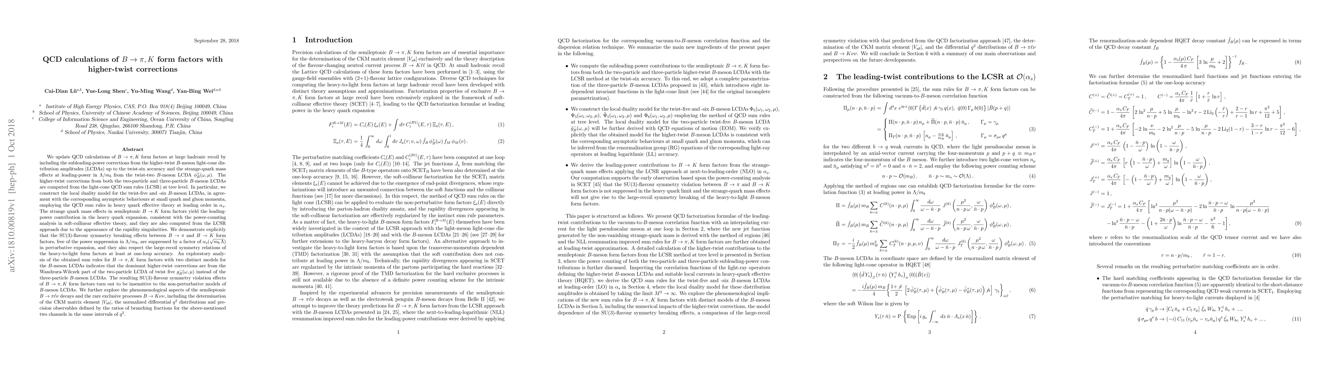This paper updates QCD calculations of $B \to \pi, K$ form factors by incorporating higher-twist corrections from $B$-meson light-cone distribution amplitudes and strange-quark mass effects. The study employs light-cone QCD sum rules and constructs a local duality model for twist-five and six $B$-meson LCDAs, providing precision observables for semileptonic and rare exclusive decays.