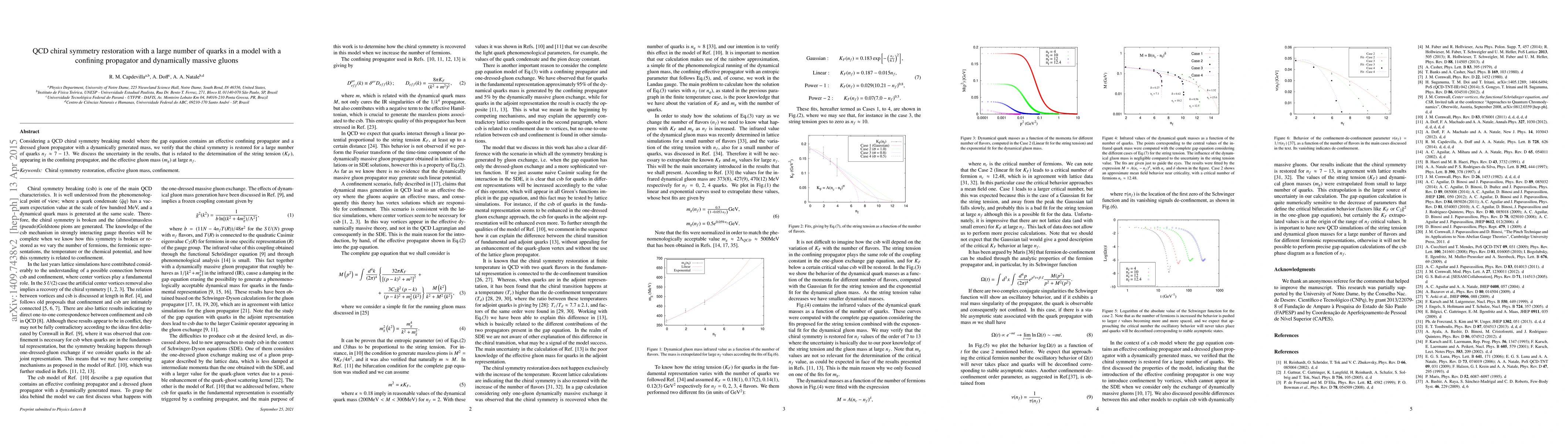 Considering a QCD chiral symmetry breaking model where the gap equation contains an effective confining propagator and a dressed gluon propagator with a dynamically generated mass, we verify that the chiral symmetry is restored for a large number of quarks $n_{f}\approx 7-13$. We discuss the uncertainty in the results, that is related to the determination of the string tension ($K_{F}$), appearing in the confining propagator, and the effective gluon mass ($m_{g}$) at large $n_{f}$.