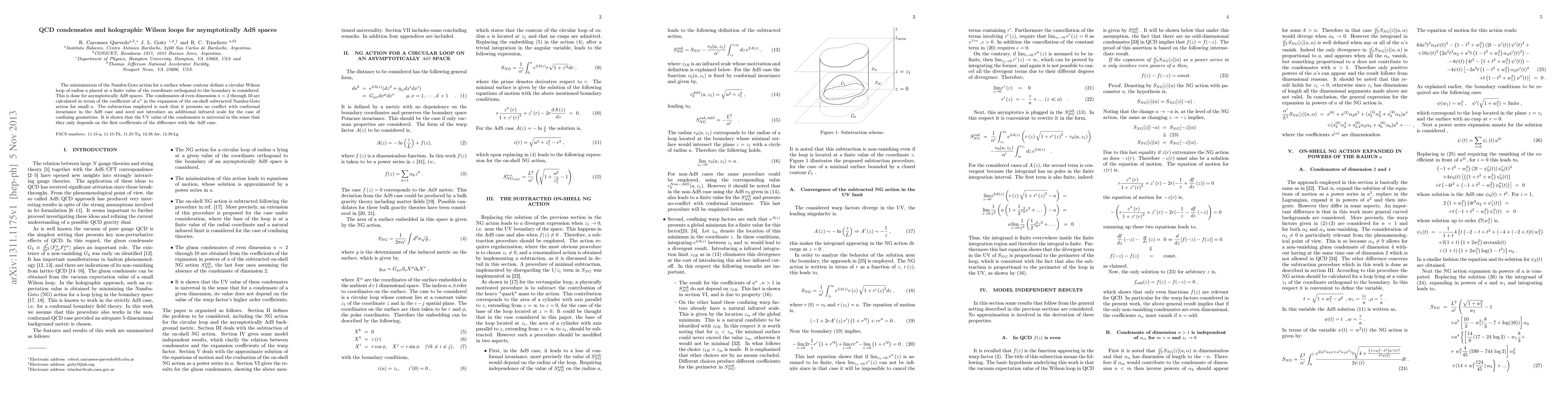 The minimization of the Nambu-Goto action for a surface whose contour defines a circular Wilson loop of radius a placed at a finite value of the coordinate orthogonal to the boundary is considered. This is done for asymptotically AdS spaces. The condensates of even dimension $n=2$ through $10$ are calculated in terms of the coefficient of $a^{n}$ in the expansion of the on-shell subtracted Nambu-Goto action for small $a$ The subtraction employed is such that it presents no conflict with conformal invariance in the AdS case and need not introduce an additional infrared scale for the case of confining geometries. It is shown that the UV value of the condensates is universal in the sense that they only depends on the first coefficients of the difference with the AdS case.