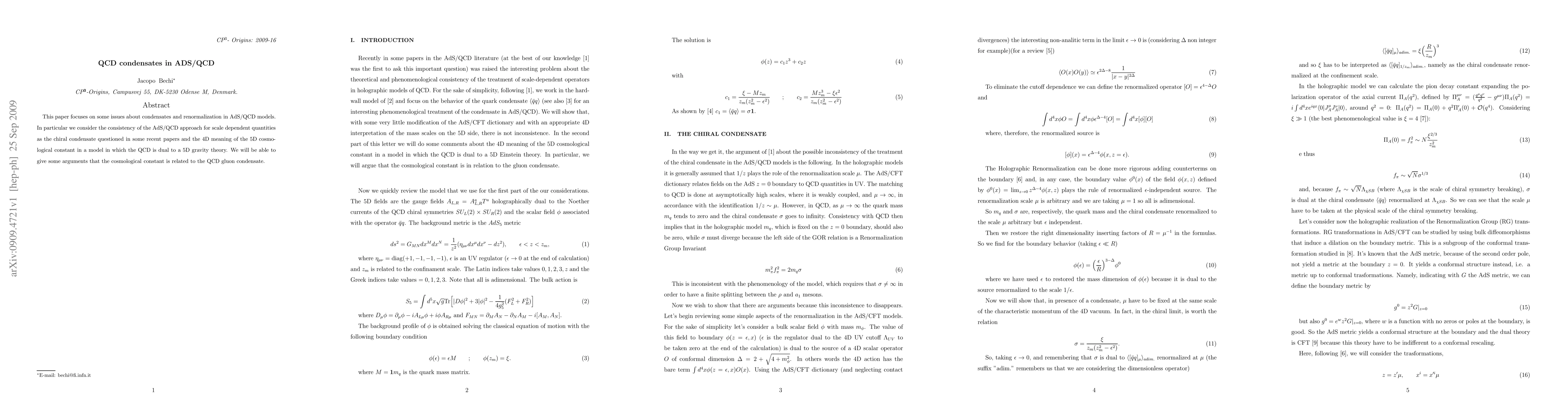 This paper investigates the consistency of AdS/QCD models concerning scale-dependent quantities like the chiral condensate and explores the 4D implications of a 5D cosmological constant, arguing that it relates to the QCD gluon condensate.