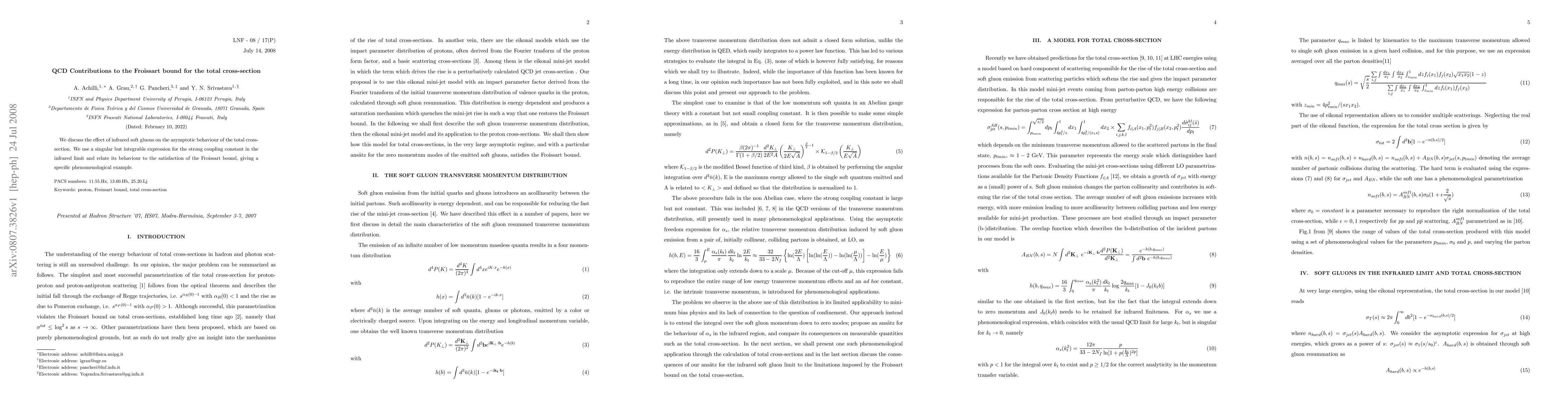 This paper examines how infrared soft gluons influence the asymptotic behavior of the total cross-section, utilizing a singular but integrable expression for the strong coupling constant in the infrared limit to demonstrate compliance with the Froissart bound, illustrated through a specific phenomenological example.