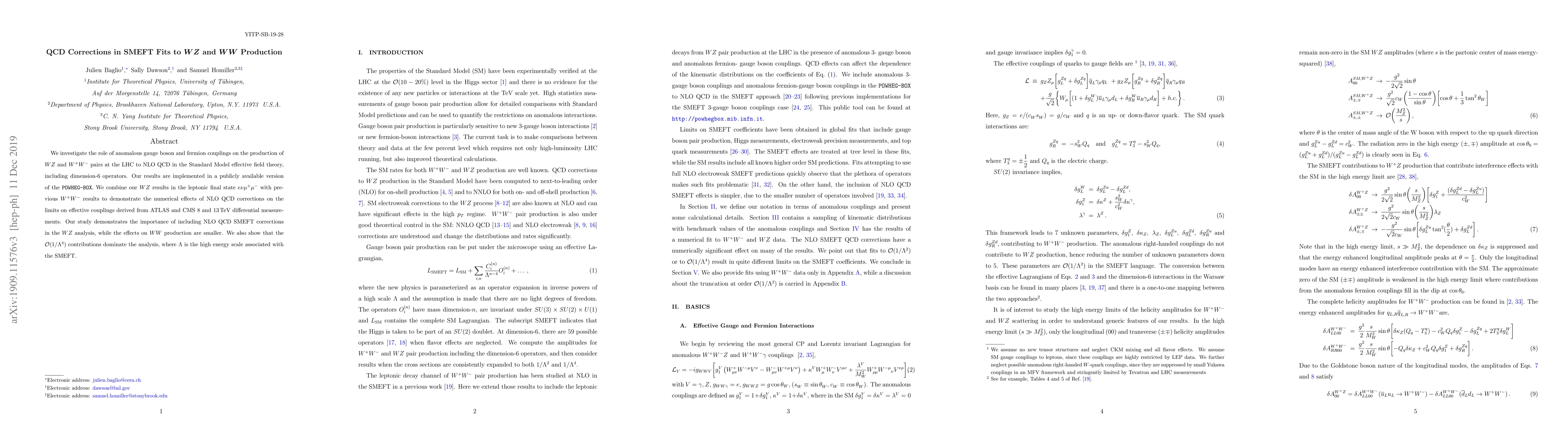 We investigate the role of anomalous gauge boson and fermion couplings on the production of $WZ$ and $W^+W^-$ pairs at the LHC to NLO QCD in the Standard Model effective field theory, including dimension-6 operators. Our results are implemented in a publicly available version of the POWHEG-BOX. We combine our $WZ$ results in the leptonic final state $e\nu \mu^+\mu^-$ with previous $W^+W^-$ results to demonstrate the numerical effects of NLO QCD corrections on the limits on effective couplings derived from ATLAS and CMS 8 and 13 TeV differential measurements. Our study demonstrates the importance of including NLO QCD SMEFT corrections in the $WZ$ analysis, while the effects on $WW$ production are smaller. We also show that the $\mathcal{O}(1/\Lambda^4)$ contributions dominate the analysis, where $\Lambda$ is the high energy scale associated with the SMEFT.