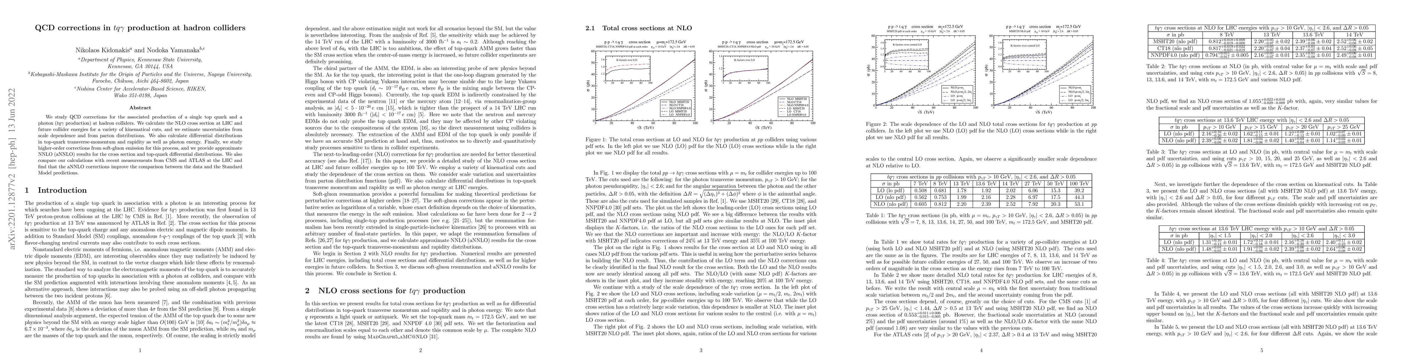 This paper investigates QCD corrections for the $tq\gamma$ production process at hadron colliders, providing NLO cross-section calculations and differential distributions. It also offers approximate NNLO results and finds that aNNLO corrections enhance agreement between theoretical predictions and experimental data from CMS and ATLAS.