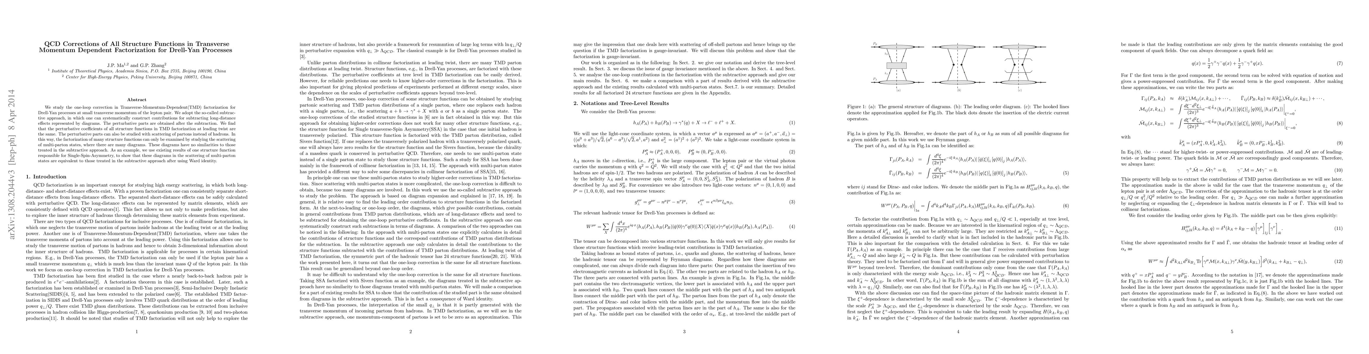 This paper investigates one-loop QCD corrections in Transverse-Momentum-Dependent factorization for Drell-Yan processes, revealing that perturbative coefficients of all structure functions are identical at leading twist. It employs a subtractive approach to systematically subtract long-distance effects, demonstrating equivalence between multi-parton scattering diagrams and those treated in the subtractive approach via Ward identity.