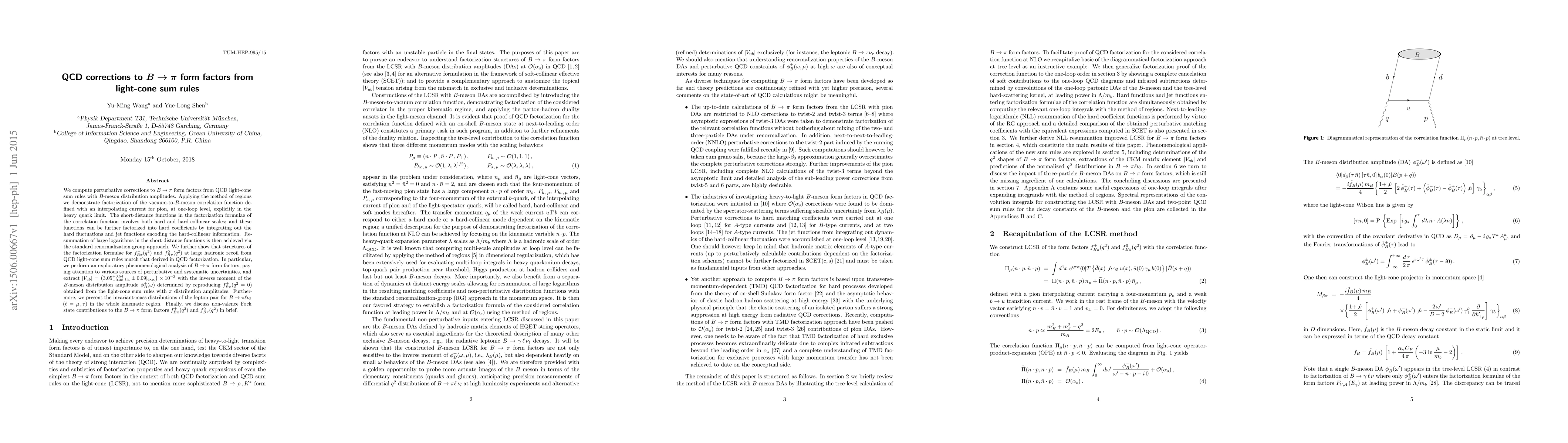 This paper computes QCD corrections to $B \to \pi$ form factors from light-cone sum rules, demonstrating factorization and resummation of large logarithms, and presents a phenomenological analysis yielding $|V_{ub}| \approx 3.05 \times 10^{-3}$. It also discusses non-valence contributions and invariant-mass distributions for $B \to \pi \ell \nu_{\ell}$.