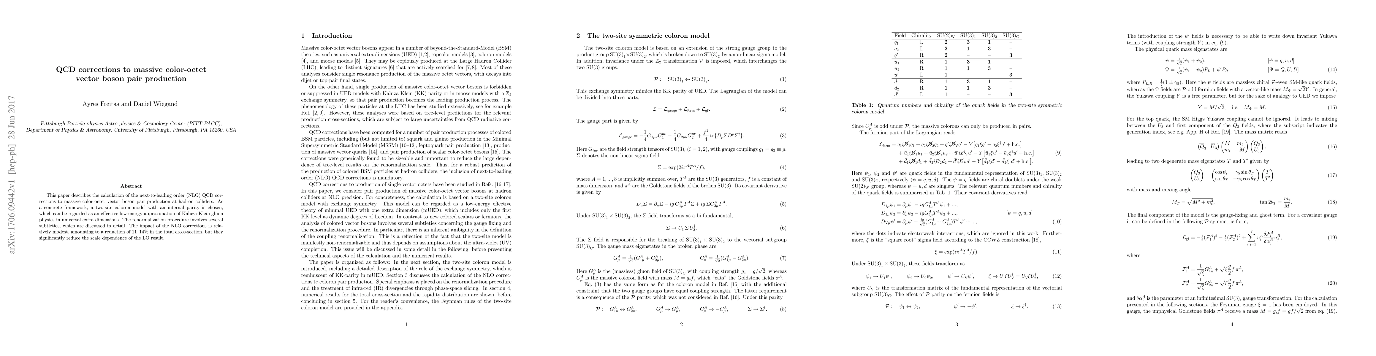 This paper describes the calculation of the next-to-leading order (NLO) QCD corrections to massive color-octet vector boson pair production at hadron colliders. As a concrete framework, a two-site coloron model with an internal parity is chosen, which can be regarded as an effective low-energy approximation of Kaluza-Klein gluon physics in universal extra dimensions. The renormalization procedure involves several subtleties, which are discussed in detail. The impact of the NLO corrections is relatively modest, amounting to a reduction of 11-14% in the total cross-section, but they significantly reduce the scale dependence of the LO result.