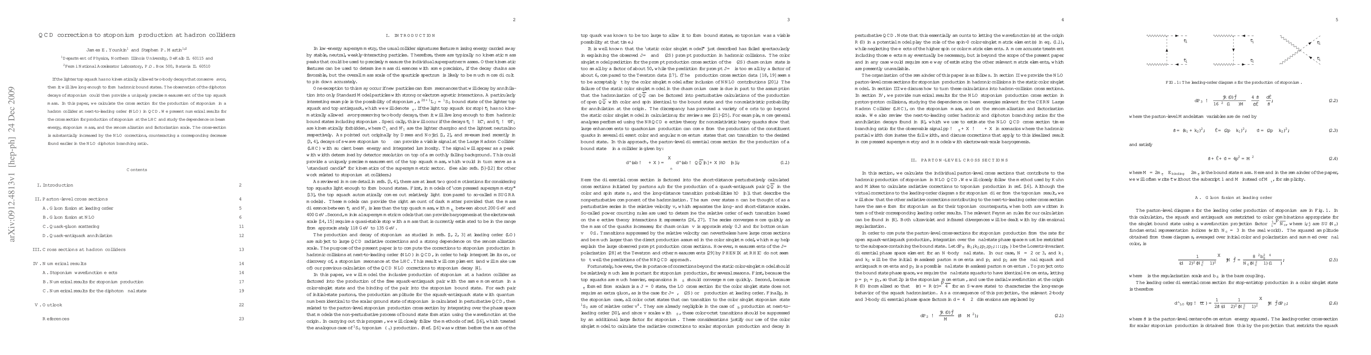 This paper calculates the next-to-leading order (NLO) QCD corrections to stoponium production at hadron colliders, finding a substantial increase in the cross-section that offsets a prior reduction in the NLO diphoton branching ratio. The study provides precise measurements of the top squark mass through the observation of stoponium diphoton decays.