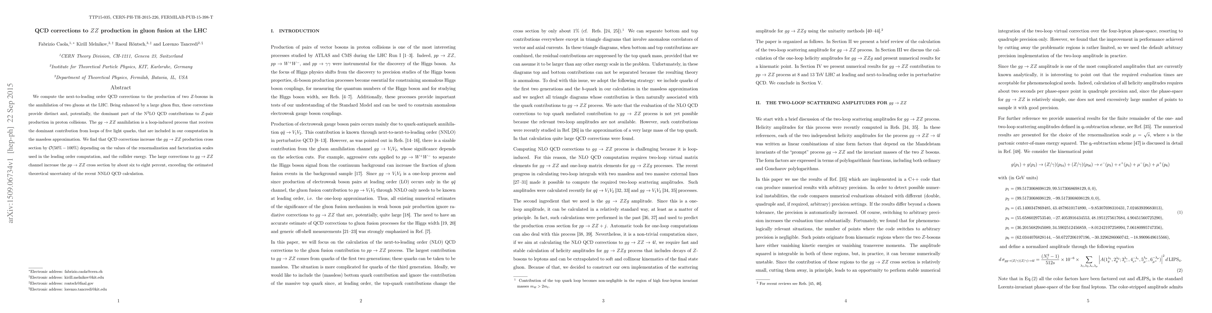 This paper computes next-to-leading order QCD corrections to the production of two Z-bosons via gluon fusion at the LHC, finding significant increases in the production cross section by 50%-100%. The corrections enhance the $pp \to ZZ$ cross section by 6%-8%, surpassing the theoretical uncertainty of previous NNLO QCD calculations.