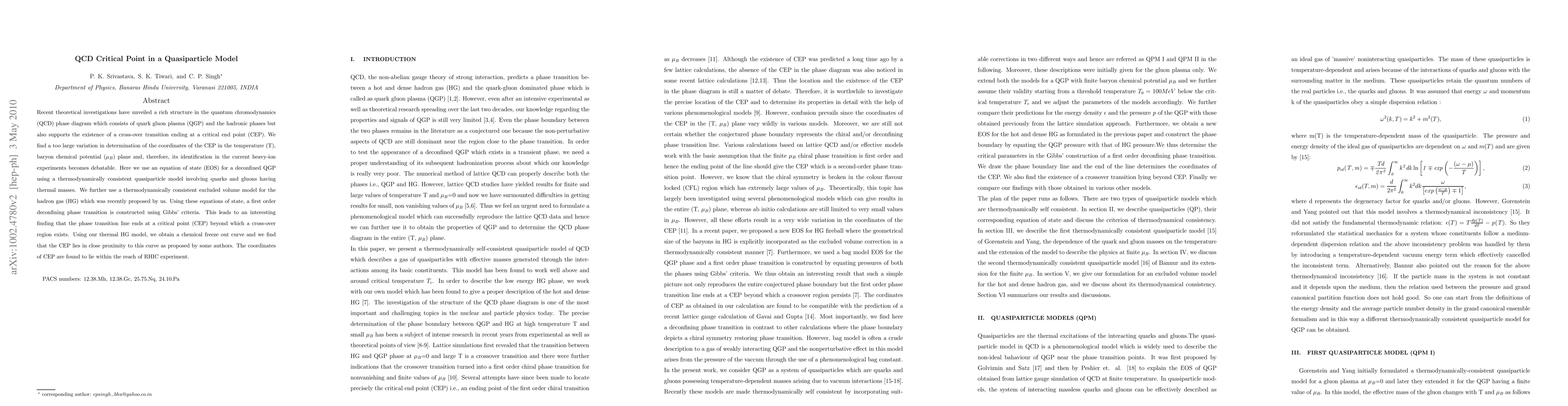 This paper investigates the quantum chromodynamics (QCD) phase diagram using a quasiparticle model for quark gluon plasma and an excluded volume model for hadron gas, finding a critical end point (CEP) in the phase transition line that may be within the reach of RHIC experiments. The study highlights the proximity of the CEP to the chemical freeze-out curve and addresses the variability in its determination.