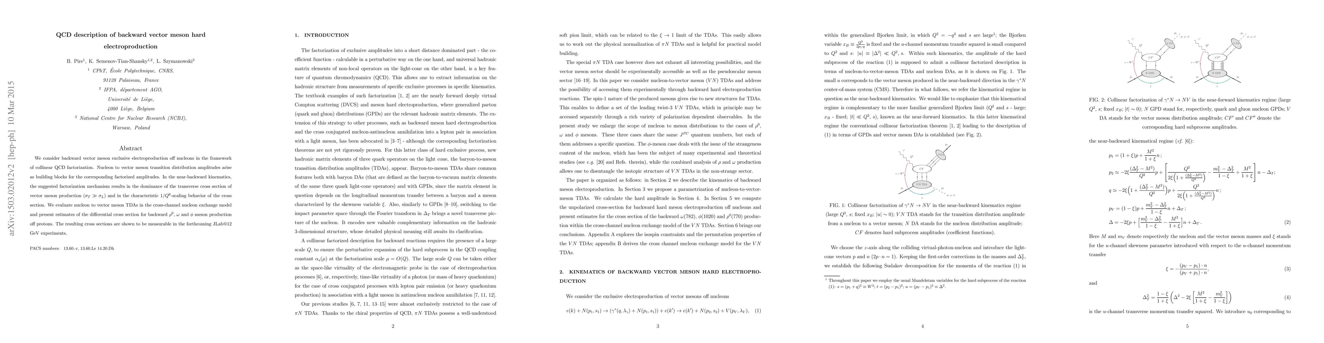 This paper explores the QCD description of backward vector meson electroproduction using collinear factorization, predicting a dominance of transverse cross sections and $1/Q^8$-scaling behavior. It evaluates transition distribution amplitudes and estimates differential cross sections for $\rho^0$, $\omega$, and $\phi$ meson production, which are expected to be measurable in upcoming JLab@12 GeV experiments.