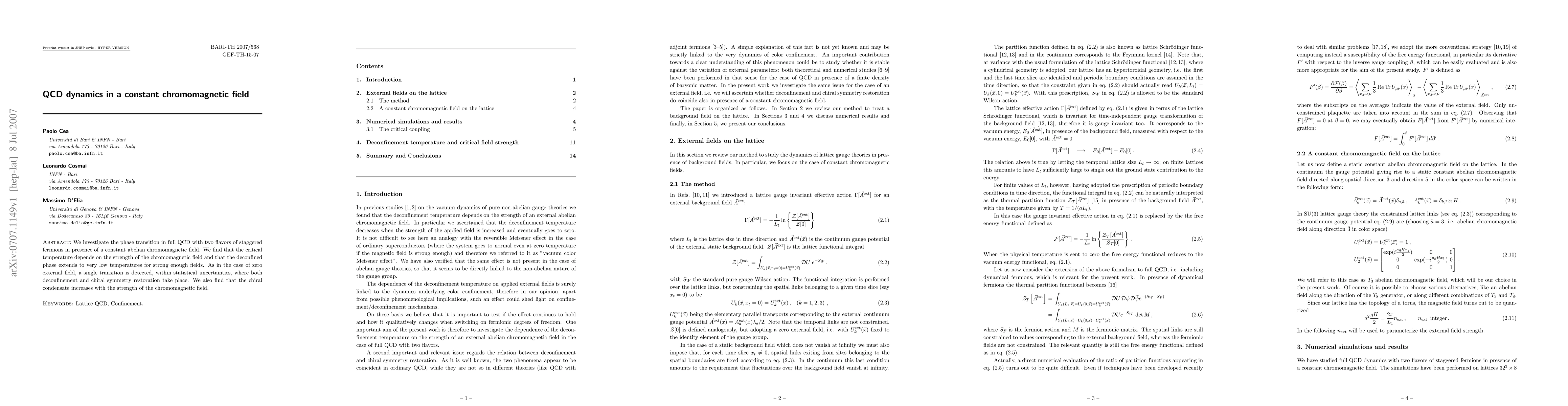 We investigate the phase transition in full QCD with two flavors of staggered fermions in presence of a constant abelian chromomagnetic field. We find that the critical temperature depends on the strength of the chromomagnetic field and that the deconfined phase extends to very low temperatures for strong enough fields. As in the case of zero external field, a single transition is detected, within statistical uncertainties, where both deconfinement and chiral symmetry restoration take place. We also find that the chiral condensate increases with the strength of the chromomagnetic field.