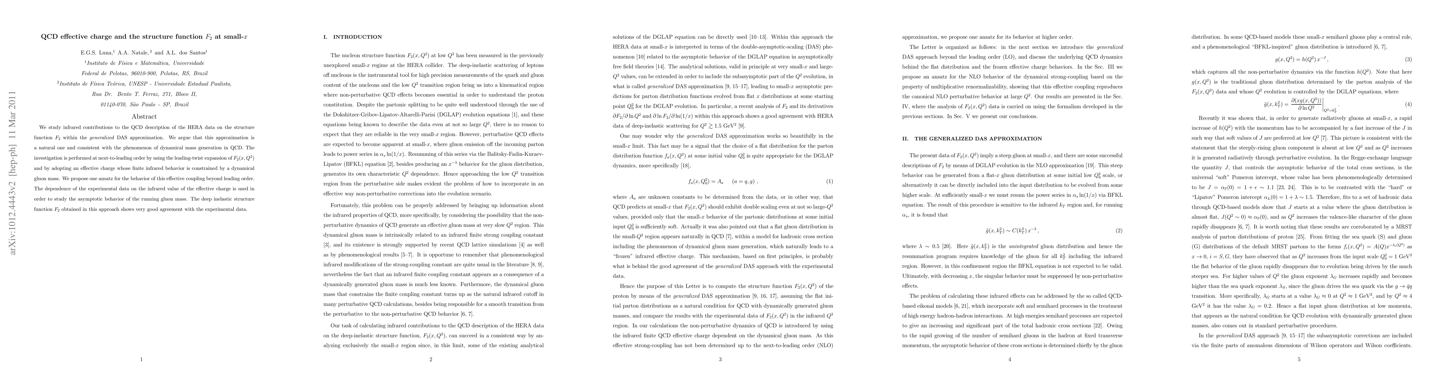 This paper investigates infrared contributions to the QCD description of HERA data on the structure function $F_{2}$ using the generalized DAS approximation, finding good agreement with experimental data and studying the asymptotic behavior of the running gluon mass through an effective charge constrained by a dynamical gluon mass.