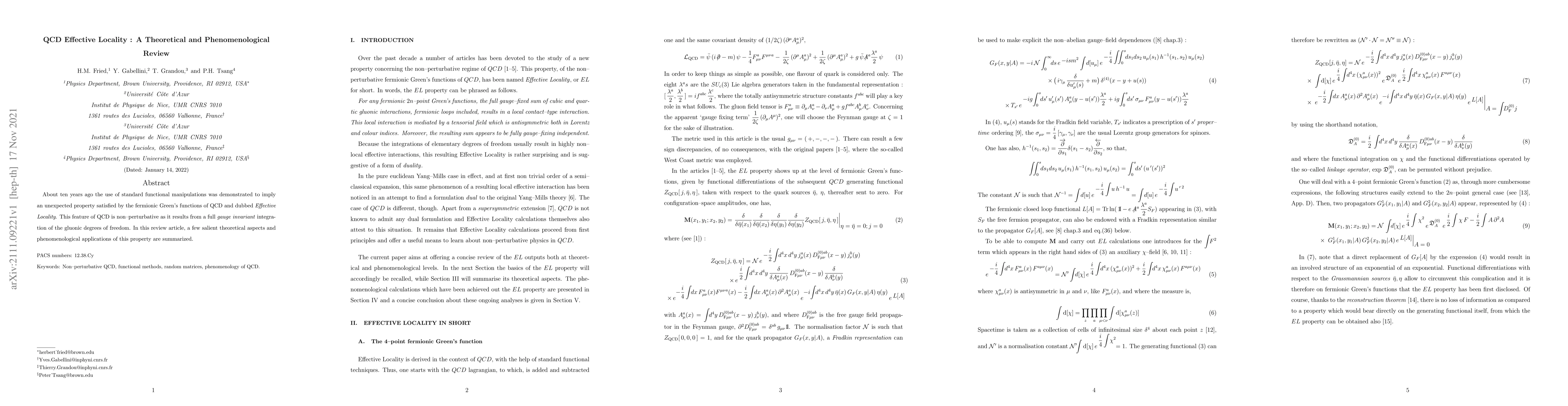 About ten years ago the use of standard functional manipulations was demonstrated to imply an unexpected property satisfied by the fermionic Green's functions of QCD and dubbed Effective Locality. This feature of QCD is nonperturbative as it results from a full gauge invariant integration of the gluonic degrees of freedom. In this review article, a few salient theoretical aspects and phenomenological applications of this property are summarized.
