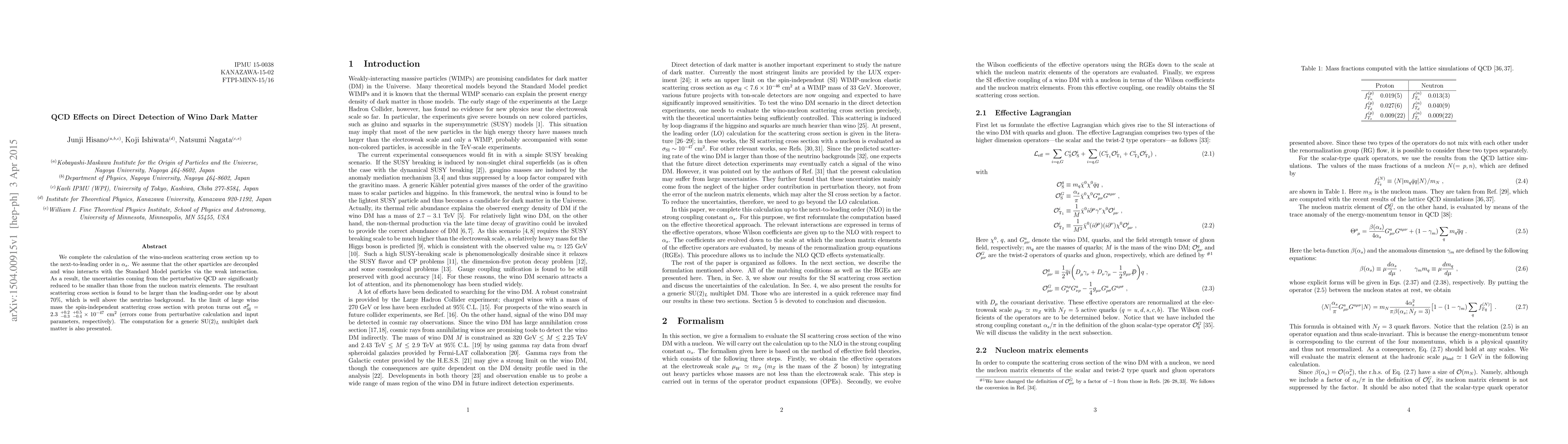 This paper provides a comprehensive NLO QCD analysis for wino dark matter, going beyond previous leading-order calculations and offering a more accurate prediction for direct detection signals.