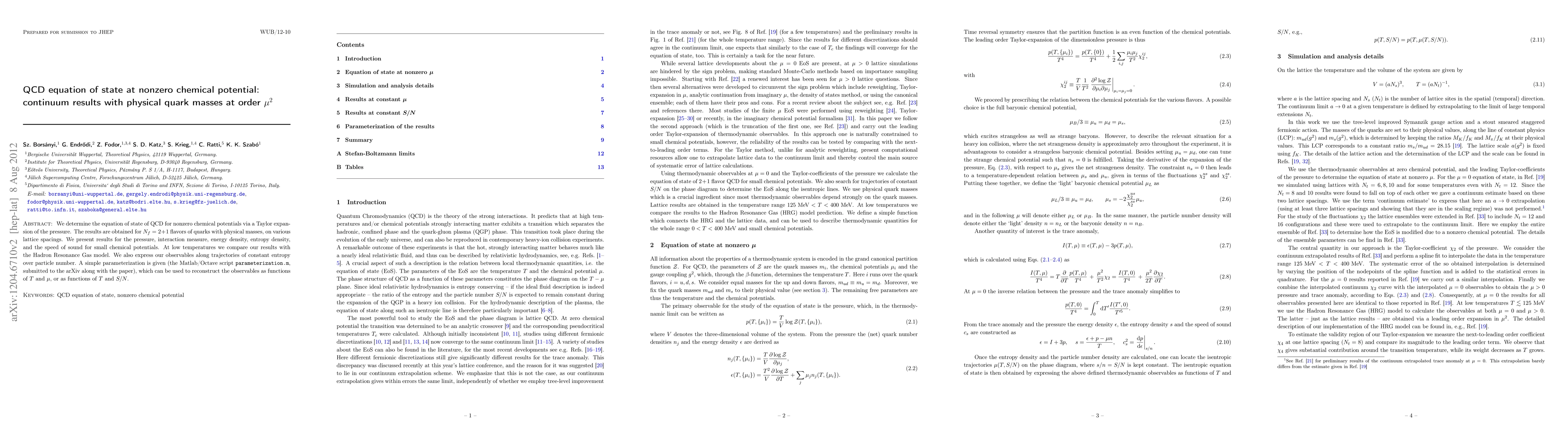 We determine the equation of state of QCD for nonzero chemical potentials via a Taylor expansion of the pressure. The results are obtained for N_f=2+1 flavors of quarks with physical masses, on various lattice spacings. We present results for the pressure, interaction measure, energy density, entropy density, and the speed of sound for small chemical potentials. At low temperatures we compare our results with the Hadron Resonance Gas model. We also express our observables along trajectories of constant entropy over particle number. A simple parameterization is given (the Matlab/Octave script parameterization.m, submitted to the arXiv along with the paper), which can be used to reconstruct the observables as functions of T and mu, or as functions of T and S/N.