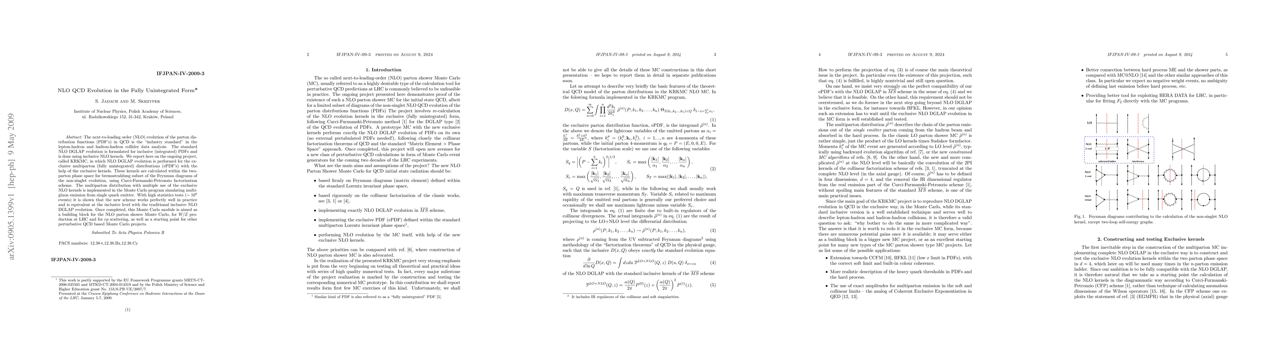 This paper presents the KRKMC project, which aims to develop a next-to-leading order (NLO) QCD evolution for exclusive multiparton distributions using exclusive NLO kernels. The new scheme is shown to be equivalent to traditional inclusive NLO DGLAP evolution, and it is intended to serve as a foundation for future NLO parton shower Monte Carlo simulations.