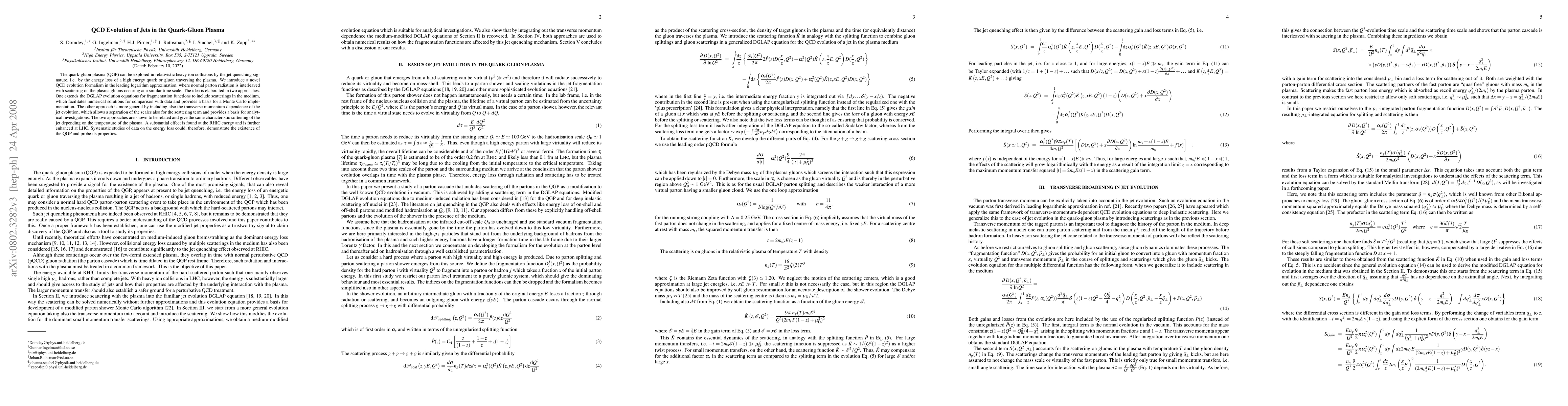 The quark-gluon plasma (QGP) can be explored in relativistic heavy ion collisions by the jet quenching signature, i.e. by the energy loss of a high energy quark or gluon traversing the plasma. We introduce a novel QCD evolution formalism in the leading logarithm approximation, where normal parton radiation is interleaved with scattering on the plasma gluons occuring at a similar time scale. The idea is elaborated in two approaches. One extends the DGLAP evolution equations for fragmentation functions to include scatterings in the medium, which facilitates numerical solutions for comparison with data and provides a basis for a Monte Carlo implementation. The other approach is more general by including also the transverse momentum dependence of the jet evolution, which allows a separation of the scales also for the scattering term and provides a basis for analytical investigations. The two approaches are shown to be related and give the same characteristic softening of the jet depending on the temperature of the plasma. A substantial effect is found at the RHIC energy and is further enhanced at LHC. Systematic studies of data on the energy loss could, therefore, demonstrate the existence of the QGP and probe its properties.
