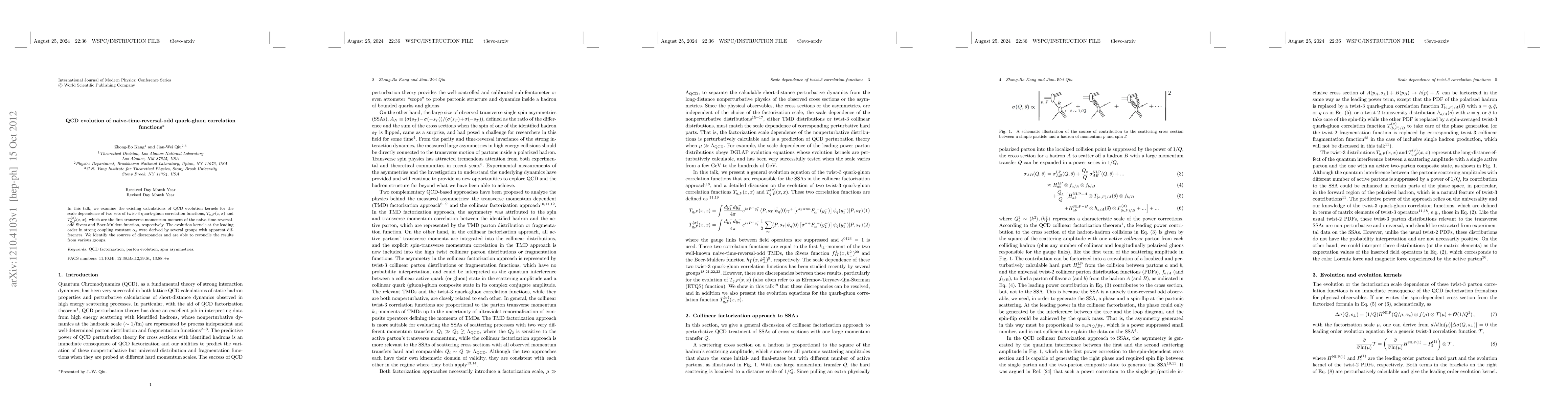 In this talk, we examine the existing calculations of QCD evolution kernels for the scale dependence of two sets of twist-3 quark-gluon correlation functions, $T_{q,F}(x,x)$ and $T^{(\sigma)}_{q,F}(x,x)$, which are the first transverse-momentum-moment of the naive-time-reversal-odd Sivers and Boer-Mulders function, respectively. The evolution kernels at the leading order in strong coupling constant $\alpha_s$ were derived by several groups with apparent differences. We identify the sources of discrepancies and are able to reconcile the results from various groups.