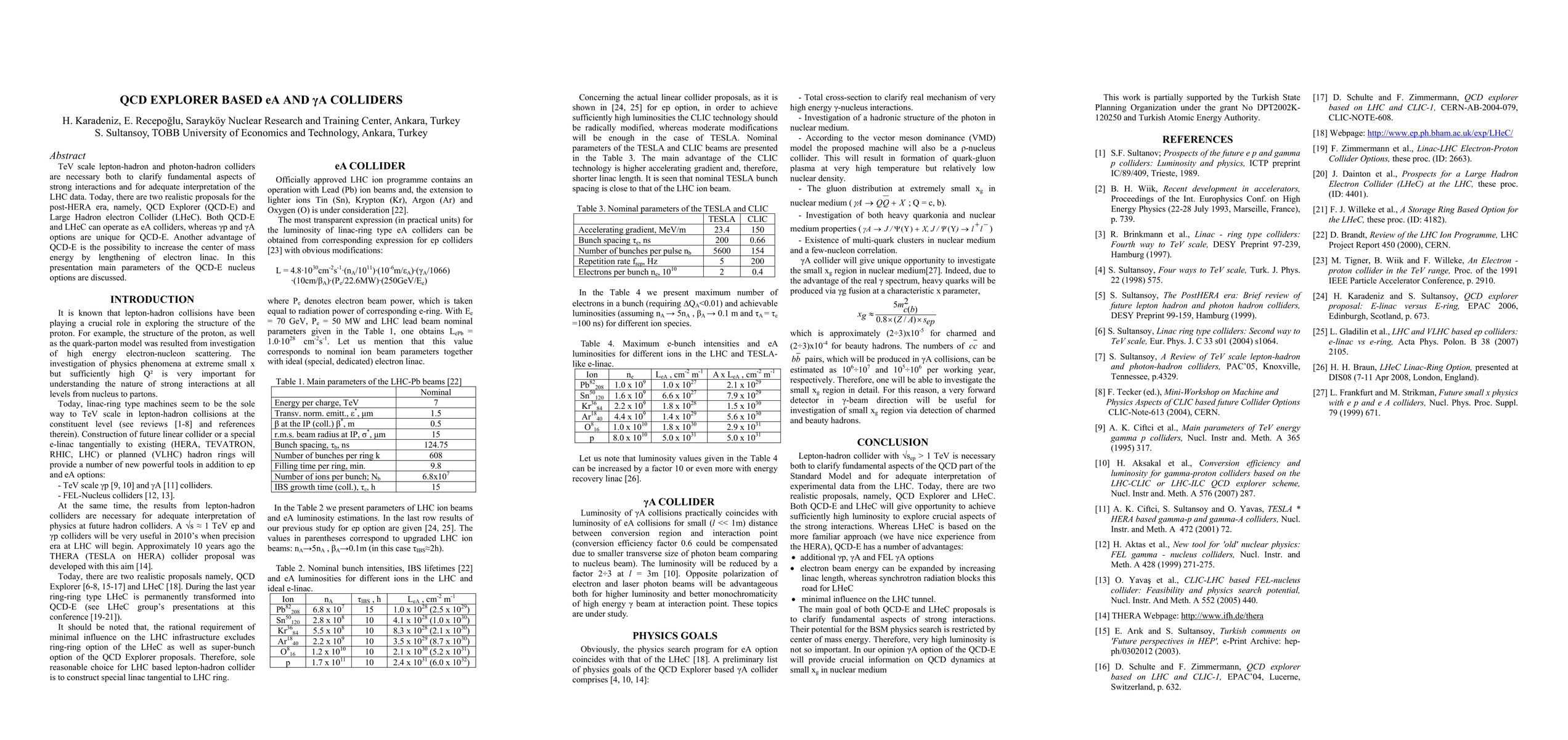 TeV scale lepton-hadron and photon-hadron colliders are necessary both to clarify fundamental aspects of strong interactions and for adequate interpretation of the LHC data. Today, there are two realistic proposals for the post-HERA era, namely, QCD Explorer (QCD-E) and Large Hadron electron Collider (LHeC). Both QCD-E and LHeC can operate as eA colliders, whereas gamma-p and gamma-A options are unique for QCD-E. Another advantage of QCD-E is the possibility to increase the center of mass energy by lengthening of electron linac. In this presentation main parameters of the QCD-E nucleus options are discussed.