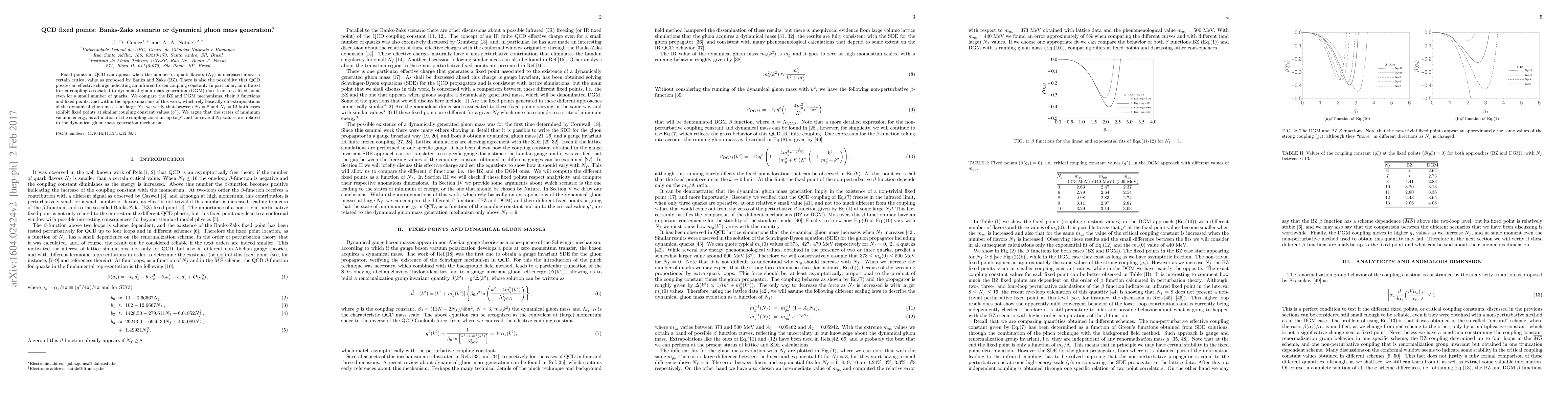 Fixed points in QCD can appear when the number of quark flavors ($N_f$) is increased above a certain critical value as proposed by Banks and Zaks (BZ). There is also the possibility that QCD possess an effective charge indicating an infrared frozen coupling constant. In particular, an infrared frozen coupling associated to dynamical gluon mass generation (DGM) does lead to a fixed point even for a small number of quarks. We compare the BZ and DGM mechanisms, their $\beta$ functions and fixed points, and within the approximations of this work, which rely basically on extrapolations of the dynamical gluon masses at large $N_f$, we verify that near the so called QCD conformal window both cases exhibit fixed points at similar coupling constant values ($g^*$). We argue that the states of minimum vacuum energy, as a function of the coupling constant up to $g^*$ and for several $N_f$ values, are related to the dynamical gluon mass generation mechanism.