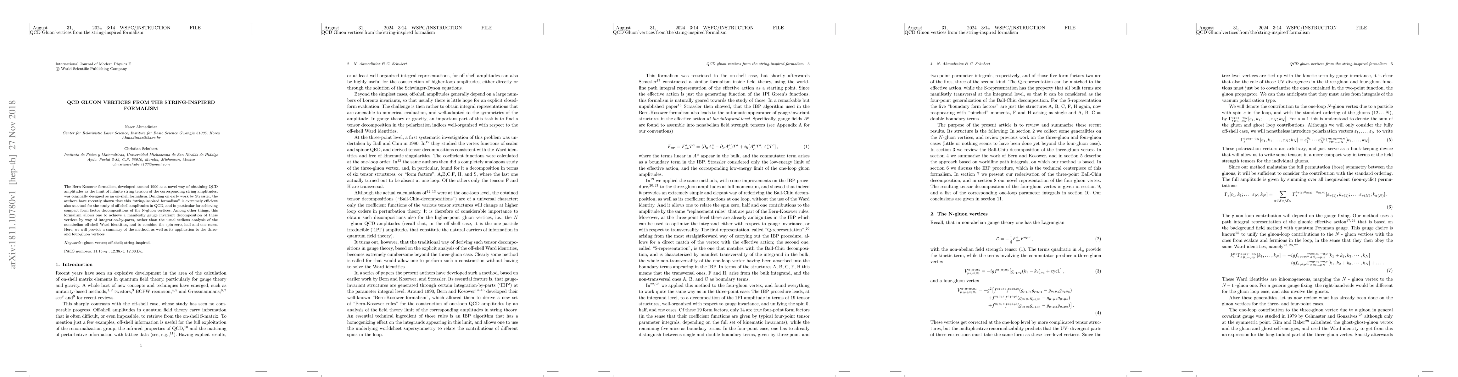 The Bern-Kosower formalism, developed around 1990 as a novel way of obtaining QCD amplitudes as the limit of infinite string tension of the corresponding string amplitudes, was originally designed as an on-shell formalism. Building on early work by Strassler, the authors have recently shown that this `string-inspired formalism' is extremely efficient also as a tool for the study of off-shell amplitudes in QCD, and in particular for achieving compact form factor decompositions of the N-gluon vertices. Among other things, this formalism allows one to achieve a manifestly gauge invariant decomposition of these vertices by way of integration-by-parts, rather than the usual tedious analysis of the nonabelian off-shell Ward identities, and to combine the spin zero, half and one cases. Here, we will provide a summary of the method, as well as its application to the three- and four-gluon vertices.