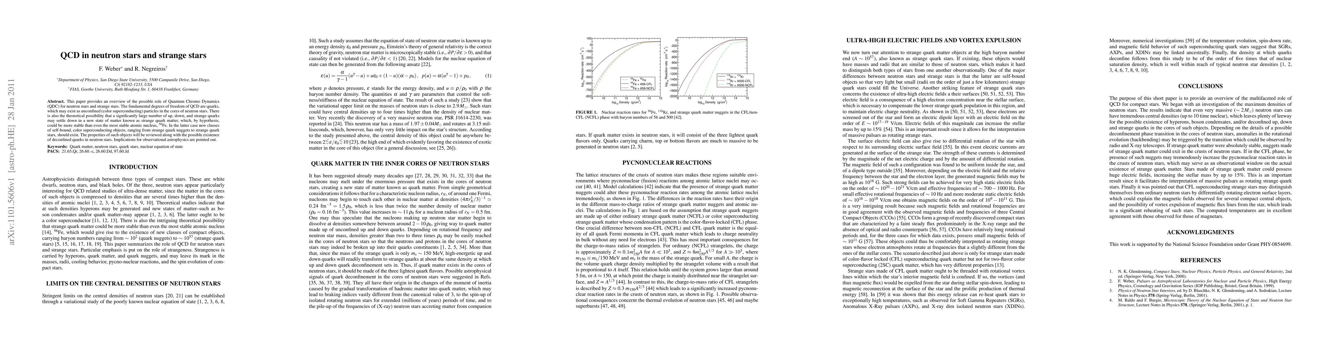 The paper provides an overview of Quantum Chromodynamics (QCD) in the context of neutron stars and strange stars, assuming known equations of state for neutron star matter up to certain energy densities and pressures, and using Einstein's theory of general relativity for gravity.
