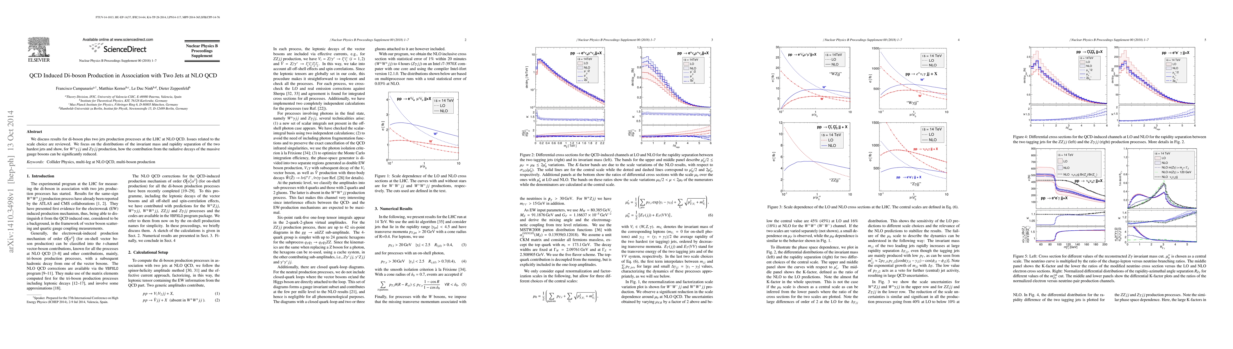 This paper presents results for di-boson plus two jets production at the LHC at next-to-leading order (NLO) QCD, focusing on the invariant mass and rapidity separation of jets. It demonstrates how the contribution from radiative decays of massive gauge bosons can be significantly reduced in $W^\pm \gamma jj$ and $Z\gamma jj$ processes.