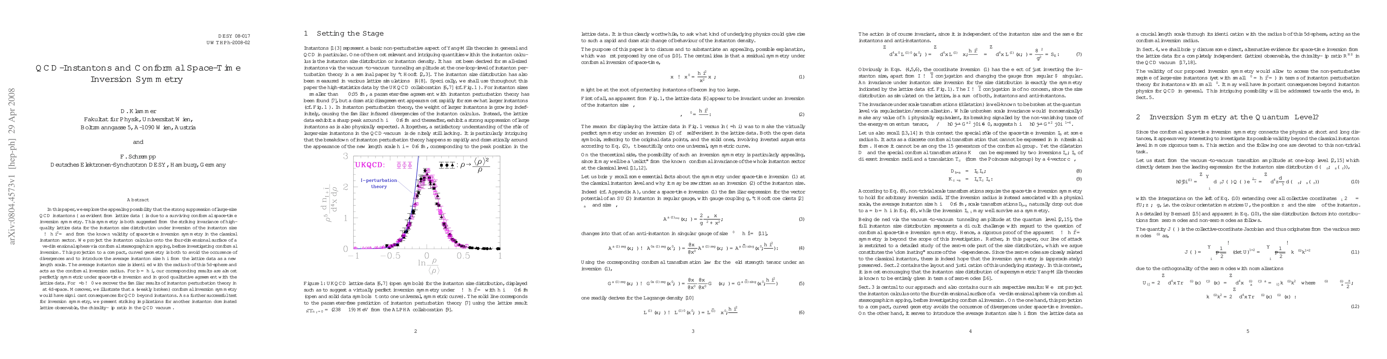 This paper investigates the suppression of large QCD instantons through a potential conformal space-time inversion symmetry, drawing from invariant lattice data and classical instanton theory. It projects instanton calculus onto a five-dimensional sphere and demonstrates that for a specific average instanton size, results are nearly symmetric under inversion, aligning well with lattice findings and impacting QCD beyond instantons.
