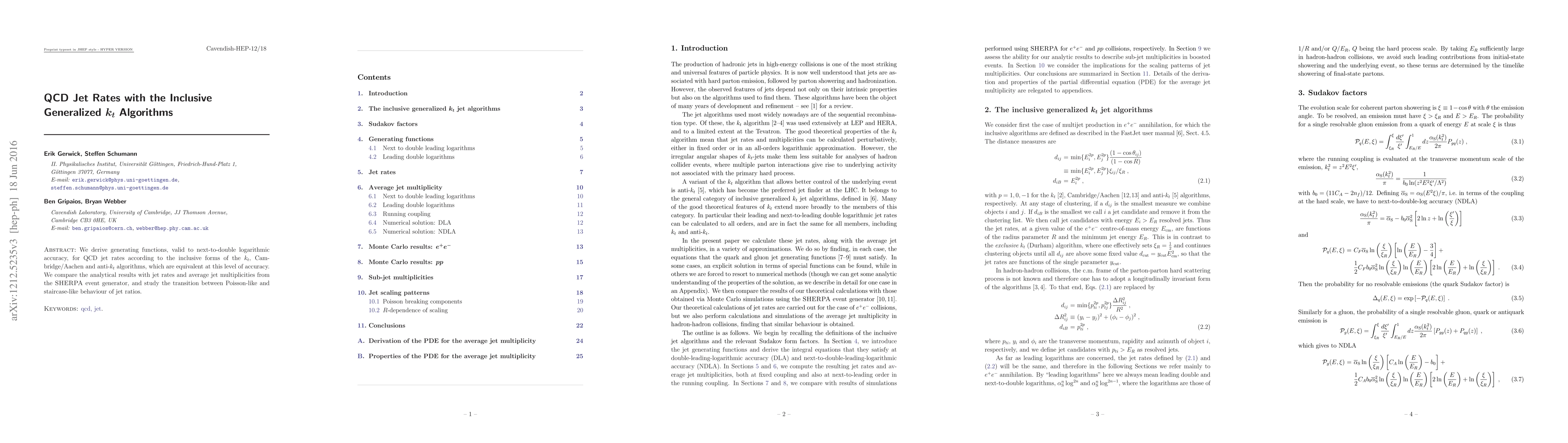 We derive generating functions, valid to next-to-double logarithmic accuracy, for QCD jet rates according to the inclusive forms of the kt, Cambridge/Aachen and anti-kt algorithms, which are equivalent at this level of accuracy. We compare the analytical results with jet rates and average jet multiplicities from the SHERPA event generator, and study the transition between Poisson-like and staircase-like behaviour of jet ratios.