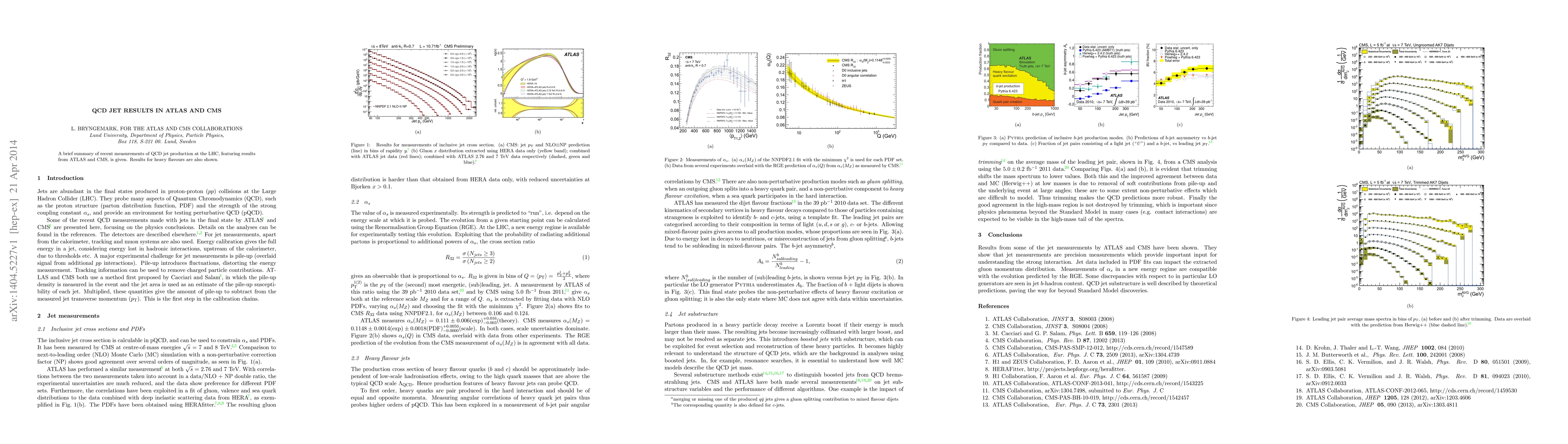 Summary: This paper presents recent findings on Quantum Chromodynamics (QCD) jet production from the ATLAS and CMS experiments at the Large Hadron Collider (LHC), including measurements of heavy flavor contributions.