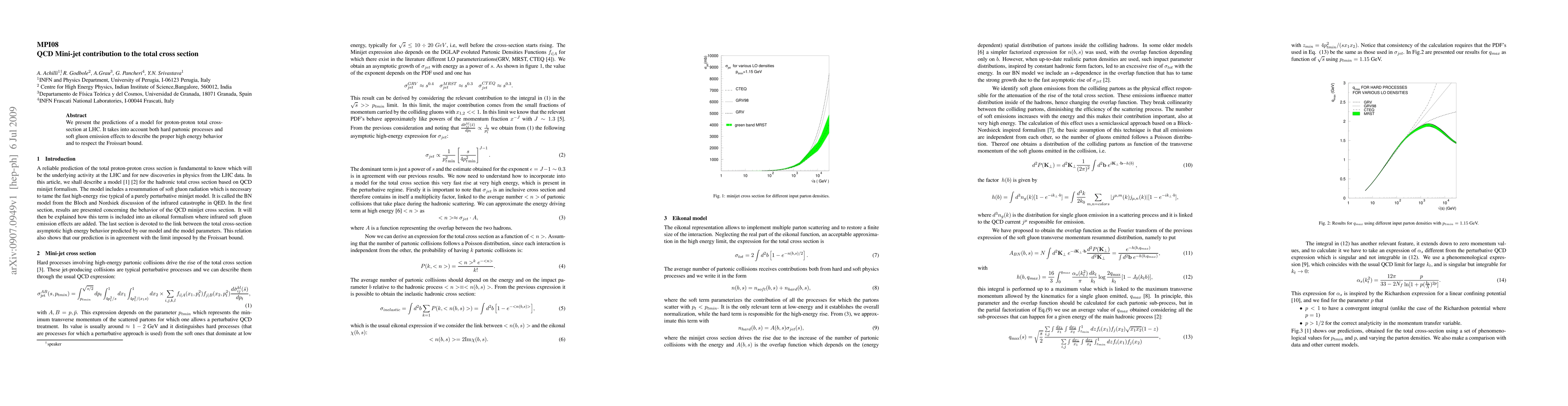 Summary: This study predicts proton-proton total cross-section at LHC using a model that incorporates both hard partonic processes and soft gluon emission effects to accurately describe high-energy behavior and comply with the Froissart bound.