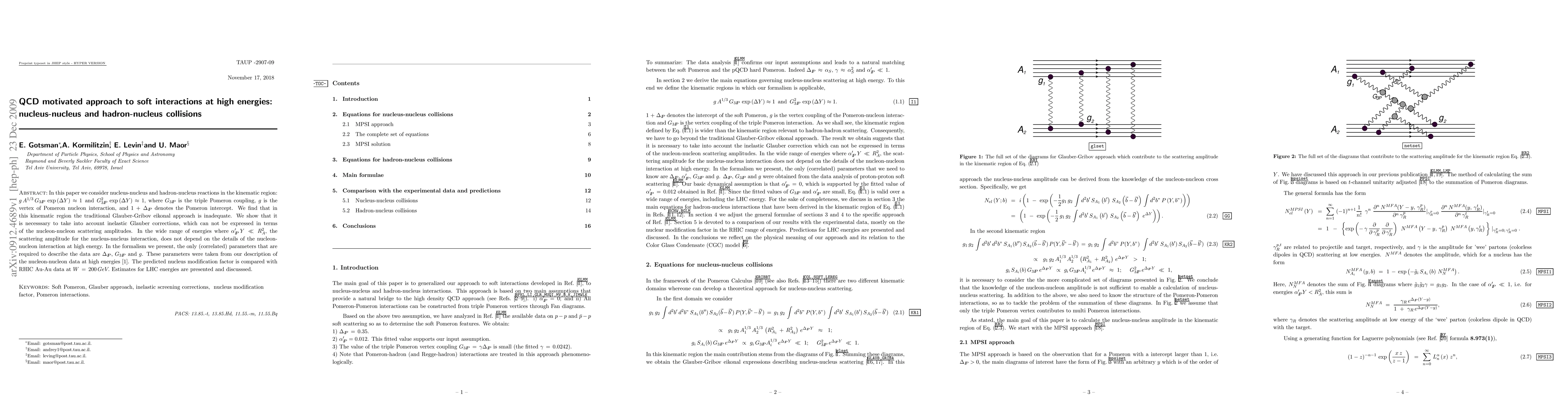 In this paper we consider nucleus-nucleus and hadron-nucleus reactions in the kinematic region: $g A^{1/3} G_{3\pom} \exp\Lb \Delta Y\Rb \approx 1 G^2_{3\pom} \exp\Lb \Delta Y\Rb \approx 1 $, where $G_{3\pom}$ is the triple Pomeron coupling, $g$ is the vertex of Pomeron nucleon interaction, and 1 + $\Delta_{\pom}$ denotes the Pomeron intercept. We find that in this kinematic region the traditional Glauber-Gribov eikonal approach is inadequate. We show that it is necesssary to take into account inelastic Glauber corrections, which can not be expressed in terms of the nucleon-nucleon scattering amplitudes. In the wide range of energies where $\alpha'_\pom Y \ll R^2_A$,the scattering amplitude for the nucleus-nucleus interaction, does not depend on the details of the nucleon-nucleon interaction at high energy. In the formalism we present, the only (correlated) parameters that are required to describe the data are $\Delta_{\pom}$, $G_{3\pom}$ and $g$. These parameters were taken from our description of the nucleon-nucleon data at high energies \cite{GLMM}.The predicted nucleus modification factor is compared with RHIC Au-Au data at $W = 200 GeV.$ Estimates for LHC energies are presented and discusssed.