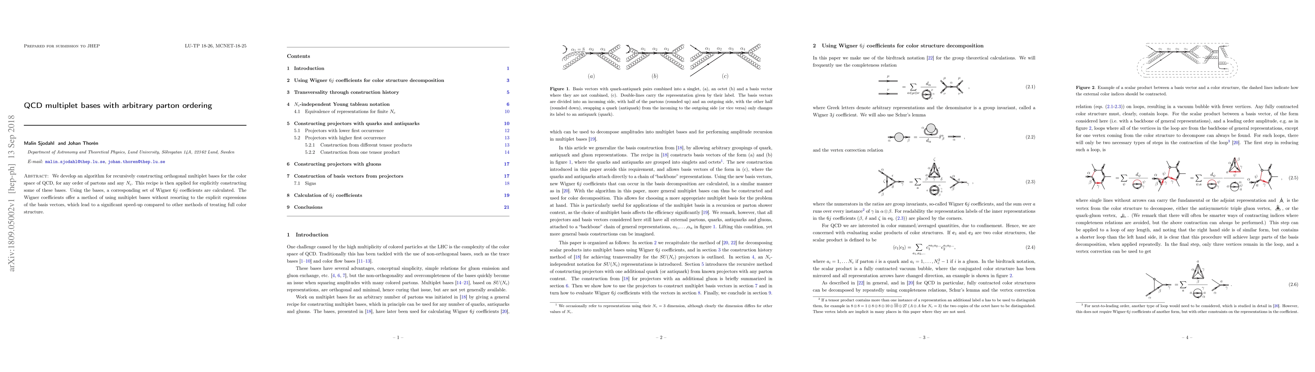 This paper presents an algorithm for constructing orthogonal multiplet bases for QCD's color space, applicable to any parton order and number of colors. It calculates Wigner 6j coefficients to efficiently utilize the bases, significantly speeding up computations compared to traditional methods.