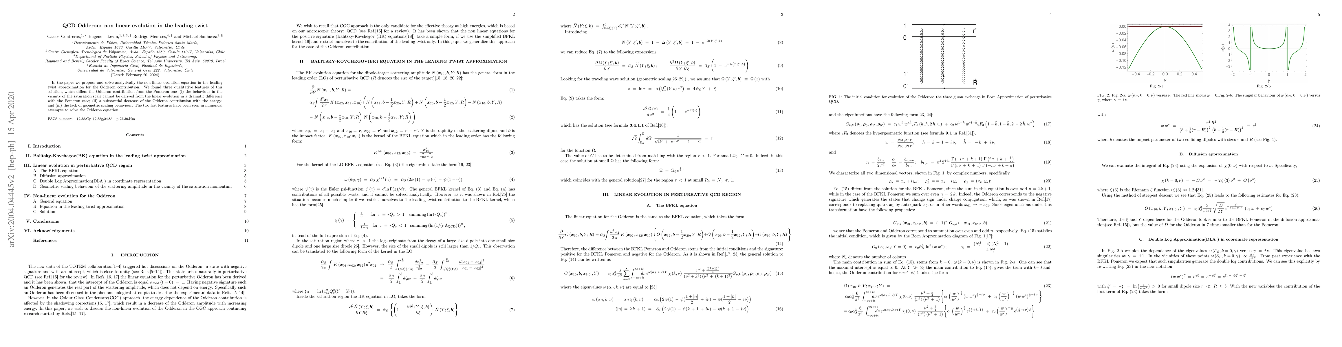 In the paper we propose and solve analytically the non-linear evolution equation in the leading twist approximation for the Odderon contribution. We found three qualitative features of this solution, which differs the Odderon contribution from the Pomeron one :(i) the behaviour in the vicinity of the saturation scale cannot be derived from the linear evolution in a dramatic difference with the Pomeron case; (ii) a substantial decrease of the Odderon contribution with the energy; and (iii) the lack of geometric scaling behaviour. The two last features have been seen in numerical attempts to solve the Odderon equation.