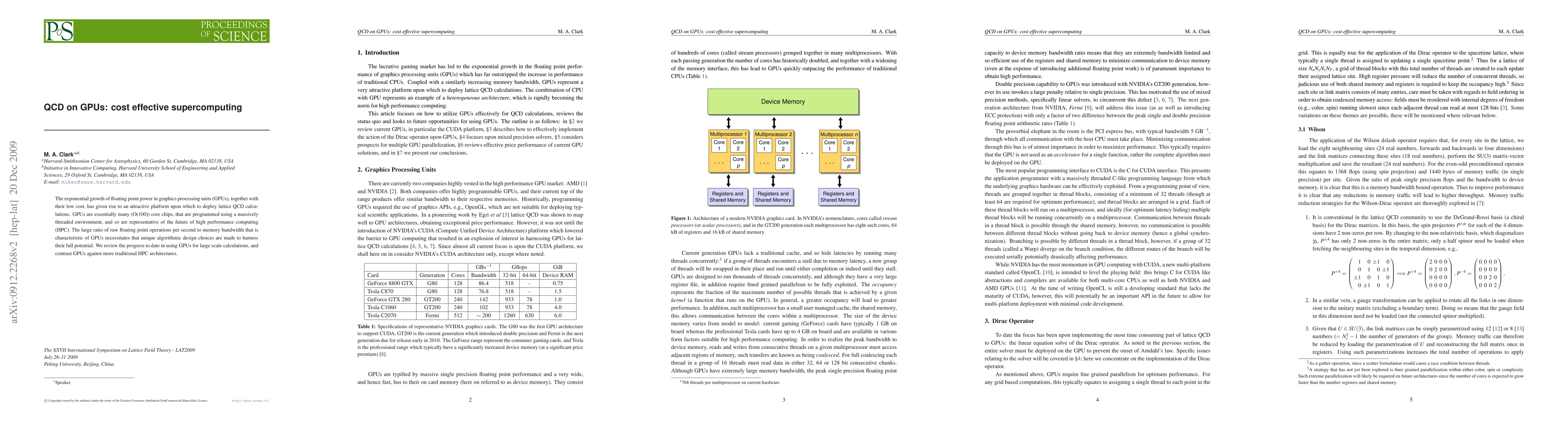 This paper explores the use of GPUs for lattice Quantum Chromodynamics (QCD) calculations, highlighting their cost-effectiveness and high floating point power. It discusses the unique algorithmic design needed to fully utilize GPUs' strengths and compares them to traditional high-performance computing architectures.