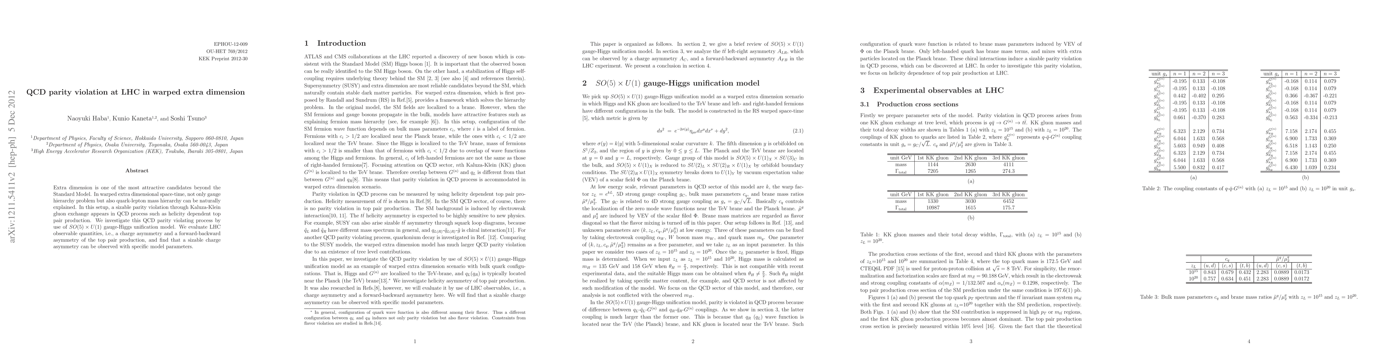 The paper presents a detailed analysis of QCD parity violation in a warped extra dimension model, specifically focusing on top pair production asymmetries at the LHC, and evaluates these using the SO(5) × U(1) gauge-Higgs unification model.