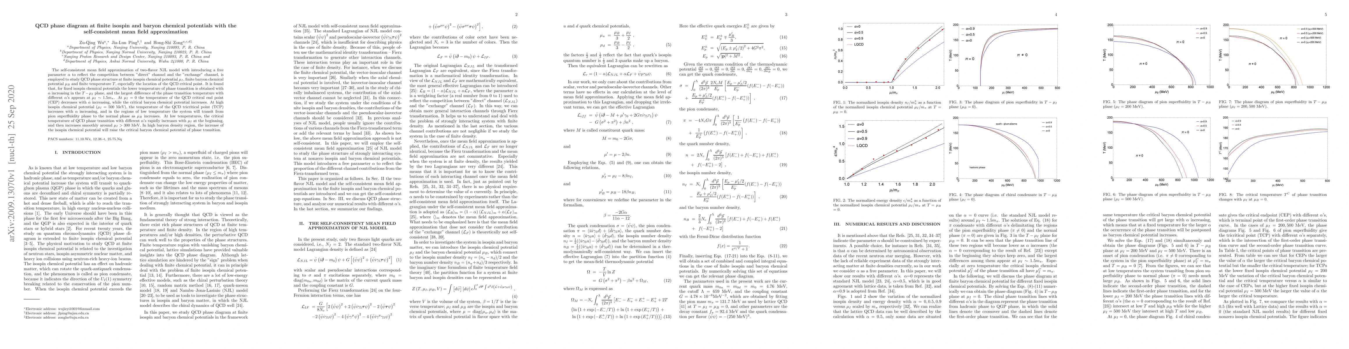 The self-consistent mean field approximation of two-flavor NJL model with introducing a free parameter $\alpha$ to reflect the competition between "direct" channel and the "exchange" channel, is employed to study QCD phase structure at finite isospin chemical potential $\mu_I$, finite baryon chemical potential $\mu_B$ and finite temperature $T$, especially the location of the QCD critical point. It is found that, for fixed isospin chemical potentials the lower temperature of phase transition is obtained with $\alpha$ increasing in the $T-\mu_I$ plane, and the largest difference of the phase transition temperature with different $\alpha$'s appears at $\mu_I \sim 1.5m_{\pi}$. At $\mu_I=0$ the temperature of the QCD critical end point (CEP) decreases with $\alpha$ increasing, while the critical baryon chemical potential increases. At high isospin chemical potential ($\mu_I=500$ MeV), the temperature of the QCD tricritical point (TCP) increases with $\alpha$ increasing, and in the regions of low temperature the system will transit from pion superfluidity phase to the normal phase as $\mu_B$ increases. At low temperatures, the critical temperature of QCD phase transition with different $\alpha$'s rapidly increases with $\mu_I$ at the beginning, and then increases smoothly around $\mu_I>300$ MeV. In high baryon density region, the increase of the isospin chemical potential will raise the critical baryon chemical potential of phase transition.