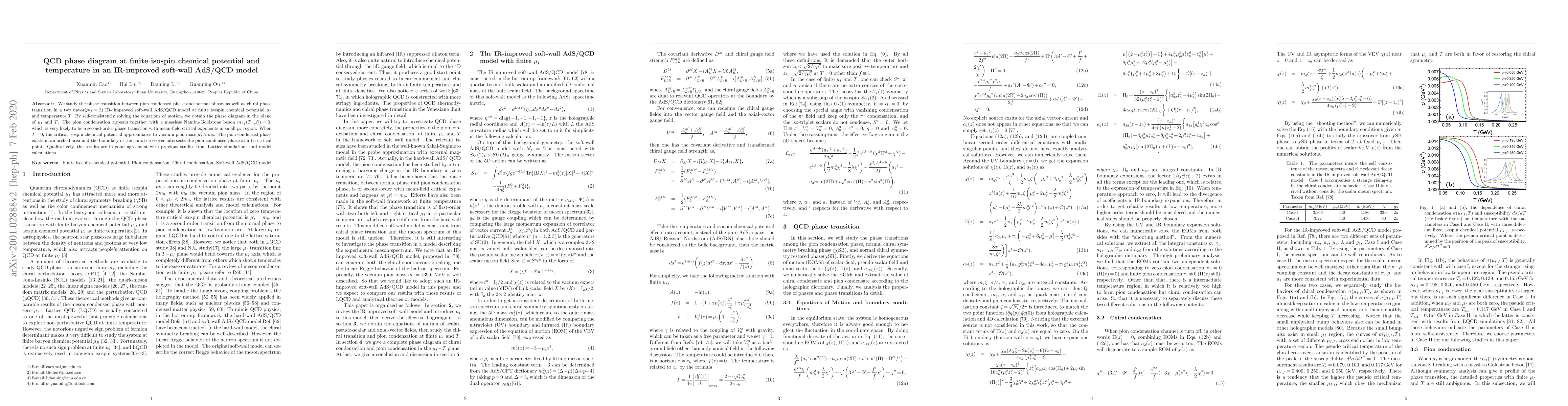 This paper explores the QCD phase diagram at finite isospin chemical potential and temperature using an IR-improved soft-wall AdS/QCD model, revealing a second-order phase transition with pion condensation and a massless Nambu-Goldstone boson. The study identifies a tri-critical point where the pion condensed phase meets the chiral crossover boundary.