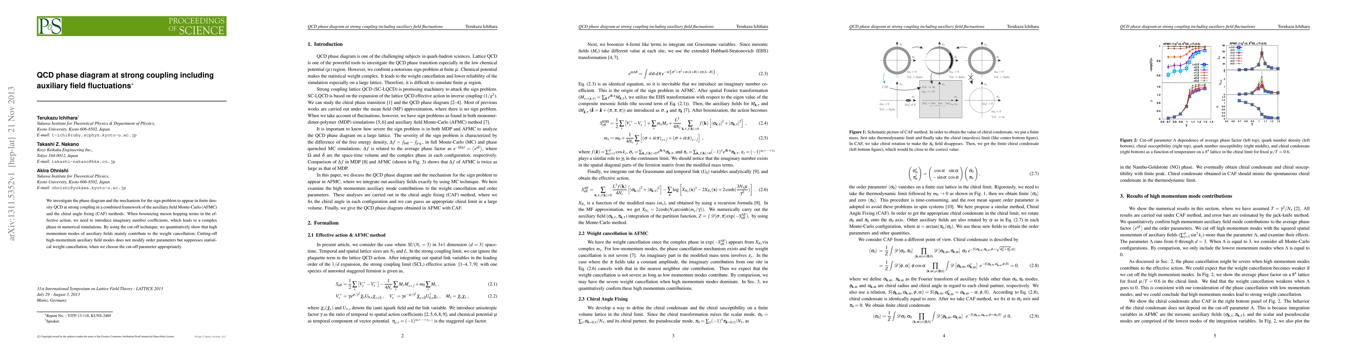 Researchers investigated the phase diagram of Quantum Chromodynamics (QCD) at strong coupling using a combination of methods, finding that cutting off high-momentum auxiliary field modes can suppress statistical weight cancellation without affecting order parameters.