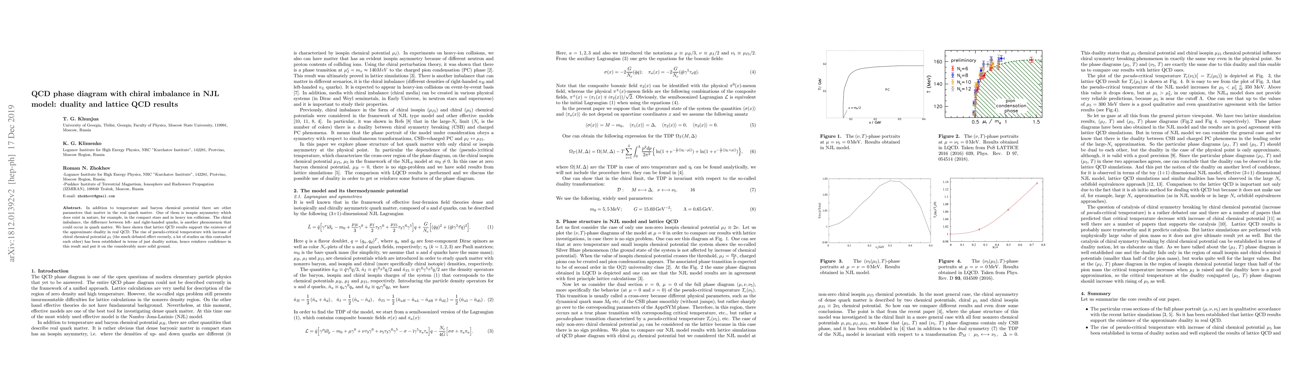 In addition to temperature and baryon chemical potential there are other parameters that matter in the real quark matter. One of them is isospin asymmetry which does exist in nature, for example, in the compact stars and in heavy ion collisions. The chiral imbalance, the difference between left- and right-handed quarks, is another phenomenon that could occur in quark matter. We have shown that lattice QCD results support the existence of the approximate duality in real QCD. The rise of pseudo-critical temperature with increase of chiral chemical potential $\mu_{5}$ (the much debated effect recently, a lot of studies on this contradict each other) has been established in terms of just duality notion, hence reinforce confidence in this result and put it on the considerably more solid ground.