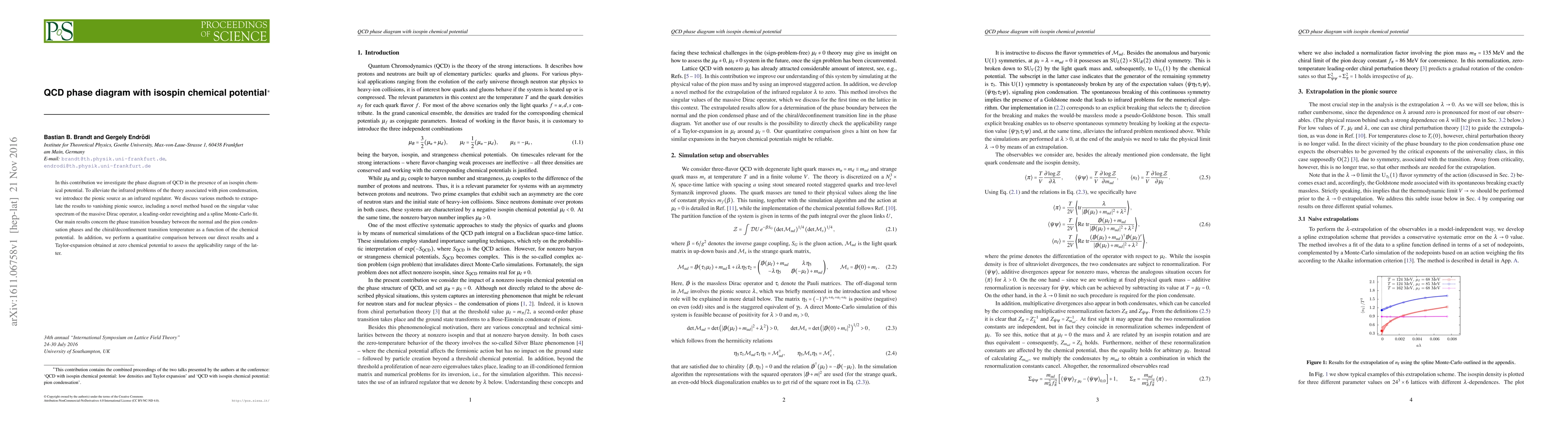 This paper investigates the QCD phase diagram with an isospin chemical potential, addressing infrared issues via a pionic source. It explores phase transition boundaries and chiral/deconfinement temperatures using various extrapolation methods, comparing results to a Taylor expansion for validation.