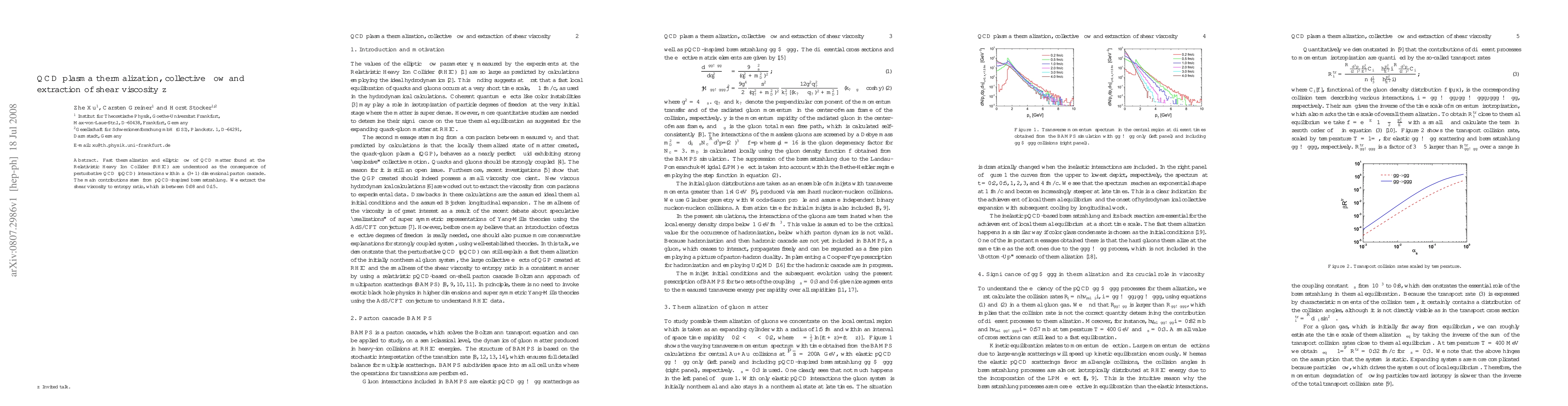 This paper explores the thermalization and collective flow in QCD plasma created at RHIC, attributing these phenomena to perturbative QCD interactions. The study extracts the shear viscosity to entropy ratio, finding it to range between 0.08 and 0.15.