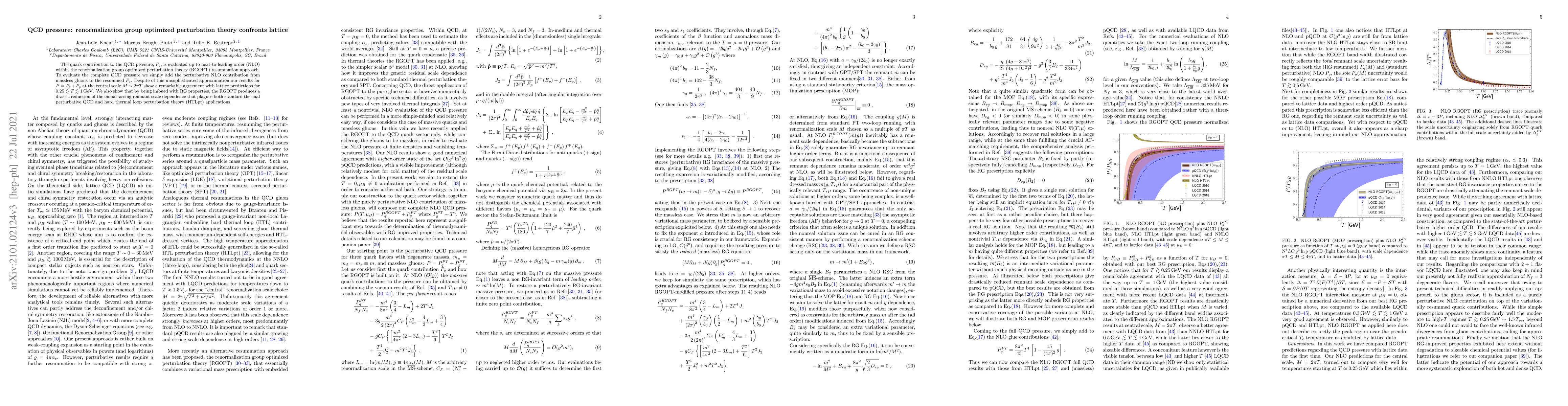 The quark contribution to the QCD pressure, $P_q$, is evaluated up to next-to-leading order (NLO) within the renormalization group optimized perturbation theory (RGOPT) resummation approach. To evaluate the complete QCD pressure we simply add the perturbative NLO contribution from massless gluons to the resummed $P_q$. Despite of this unsophisticated approximation our results for $P = P_q +P_g$ at the central scale $M\sim 2\pi T$ show a remarkable agreement with ab initio lattice predictions for $0.25 \lesssim T \lesssim 1 \, {\rm GeV}$. We also show that by being imbued with RG properties, the RGOPT produces a drastic reduction of the embarrassing remnant scale dependence that plagues both standard thermal perturbative QCD and hard thermal loop perturbation theory (HTLpt) applications.