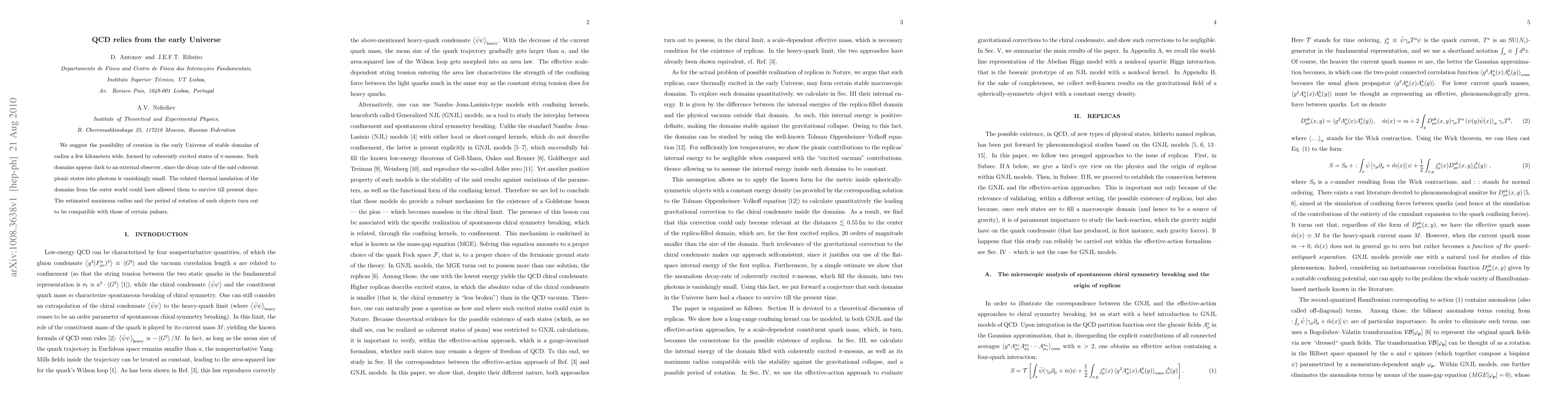 This paper proposes the existence of stable, kilometer-sized domains formed by coherently excited $\pi$-mesons in the early Universe, which remain dark due to minimal decay into photons. These relics could have survived until today, potentially explaining certain characteristics of pulsars.