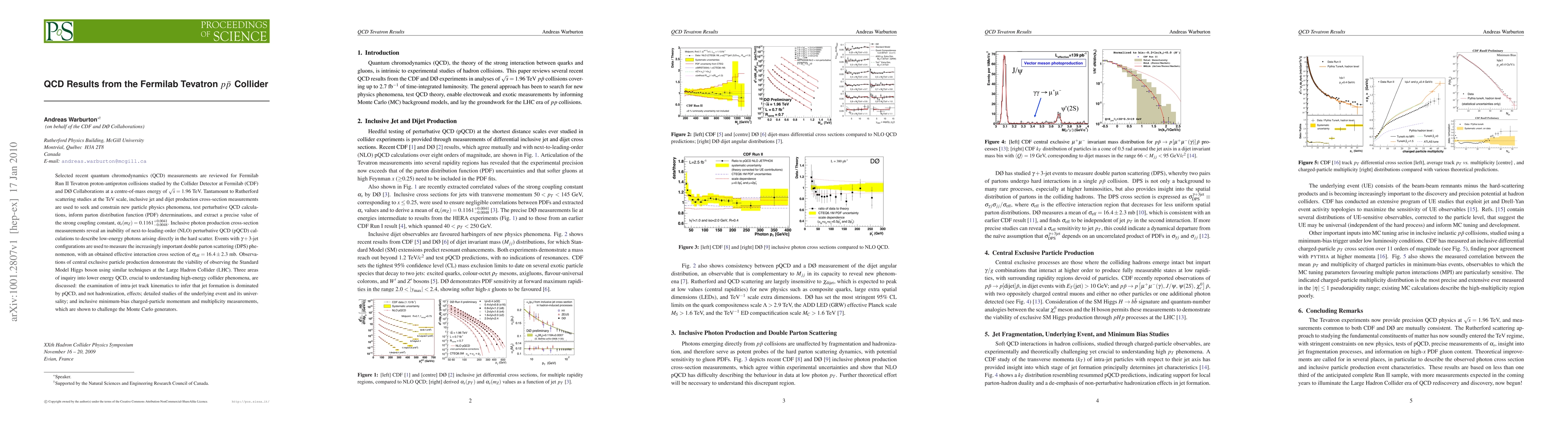Selected recent quantum chromodynamics (QCD) measurements are reviewed for Fermilab Run II Tevatron proton-antiproton collisions studied by the Collider Detector at Fermilab (CDF) and DZero Collaborations at a centre-of-mass energy of sqrt{s}=1.96 TeV. Tantamount to Rutherford scattering studies at the TeV scale, inclusive jet and dijet production cross-section measurements are used to seek and constrain new particle physics phenomena, test perturbative QCD calculations, inform parton distribution function (PDF) determinations, and extract a precise value of the strong coupling constant, alpha_s(m_Z) = 0.1161^{+0.0041}_{-0.0048}. Inclusive photon production cross-section measurements reveal an inability of next-to-leading-order (NLO) perturbative QCD (pQCD) calculations to describe low-energy photons arising directly in the hard scatter. Events with gamma + 3-jet configurations are used to measure the increasingly important double parton scattering (DPS) phenomenon, with an obtained effective interaction cross section of sigma_{eff} = 16.4 +- 2.3 mb. Observations of central exclusive particle production demonstrate the viability of observing the Standard Model Higgs boson using similar techniques at the Large Hadron Collider (LHC). Three areas of inquiry into lower energy QCD, crucial to understanding high-energy collider phenomena, are discussed: the examination of intra-jet track kinematics to infer that jet formation is dominated by pQCD, and not hadronization, effects; detailed studies of the underlying event and its universality; and inclusive minimum-bias charged-particle momentum and multiplicity measurements, which are shown to challenge the Monte Carlo generators.