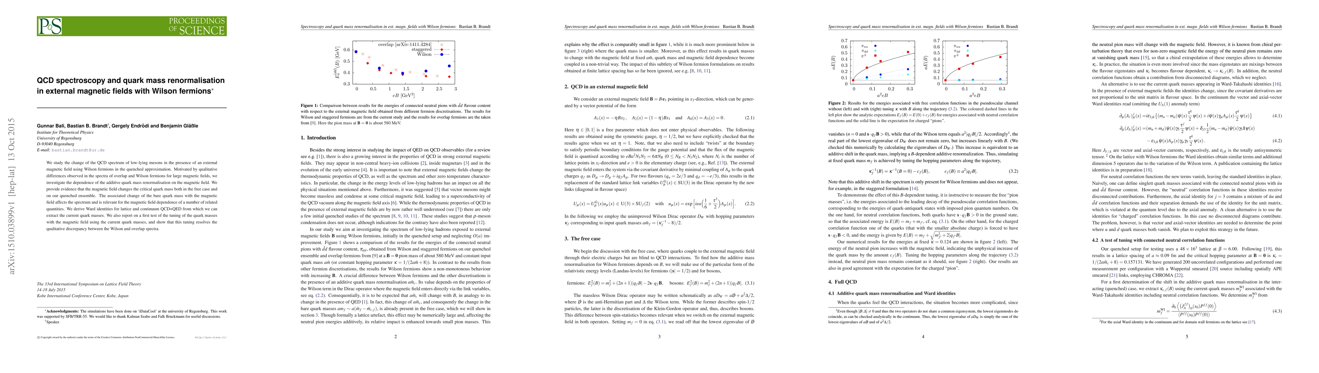 We study the change of the QCD spectrum of low-lying mesons in the presence of an external magnetic field using Wilson fermions in the quenched approximation. Motivated by qualitative differences observed in the spectra of overlap and Wilson fermions for large magnetic fields, we investigate the dependence of the additive quark mass renormalisation on the magnetic field. We provide evidence that the magnetic field changes the critical quark mass both in the free case and on our quenched ensemble. The associated change of the bare quark mass with the magnetic field affects the spectrum and is relevant for the magnetic field dependence of a number of related quantities. We derive Ward identities for lattice and continuum QCD+QED from which we can extract the current quark masses. We also report on a first test of the tuning of the quark masses with the magnetic field using the current quark masses, and show that this tuning resolves the qualitative discrepancy between the Wilson and overlap spectra.
