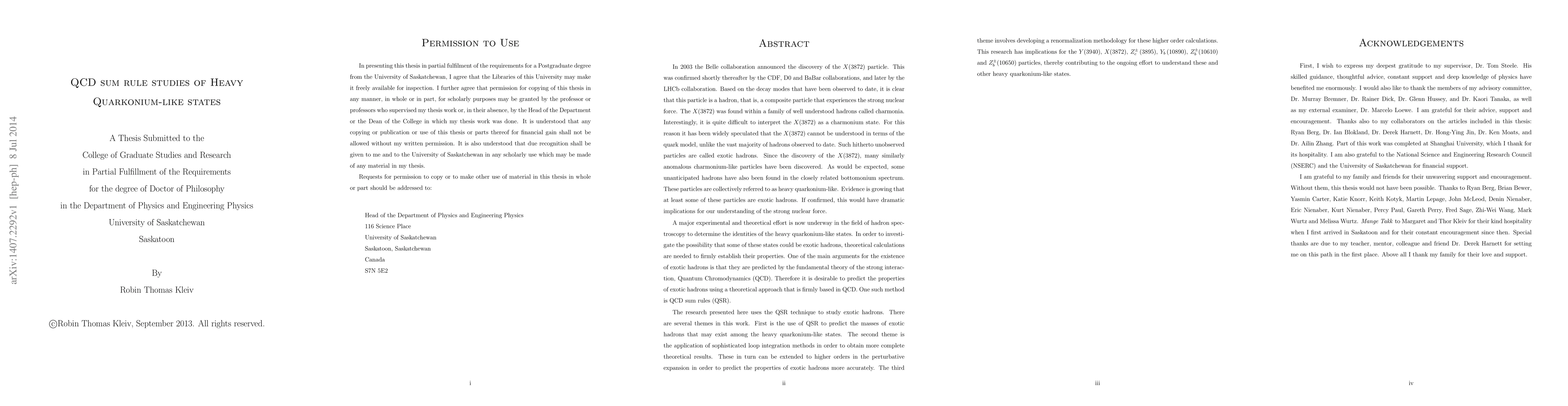 The research presented here uses QCD sum rules (QSR) to study exotic hadrons. There are several themes in this work. First is the use of QSR to predict the masses of exotic hadrons that may exist among the heavy quarkonium-like states. The second theme is the application of sophisticated loop integration methods in order to obtain more complete theoretical results. These in turn can be extended to higher orders in the perturbative expansion in order to predict the properties of exotic hadrons more accurately. The third theme involves developing a renormalization methodology for these higher order calculations. This research has implications for the $Y(3940)$, $X(3872)$, $Z_c^\pm\left(3895\right)$, $Y_b\left(10890\right)$, $Z_b^{\pm}(10610)$ and $Z_b^{\pm}(10650)$ particles, thereby contributing to the ongoing effort to understand these and other heavy quarkonium-like states.
