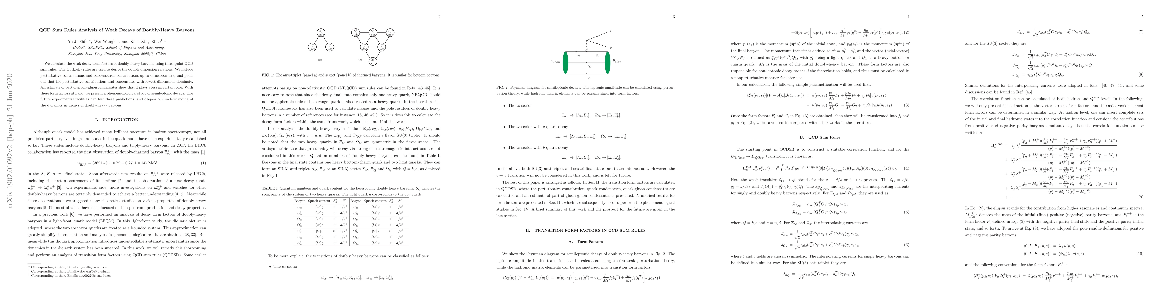 This paper uses QCD sum rules to calculate the weak decay form factors of doubly-heavy baryons, finding that lower-dimensional perturbative contributions and condensates dominate. It presents predictions for semileptonic decays that future experimental facilities may test, enhancing our understanding of these baryons' dynamics.